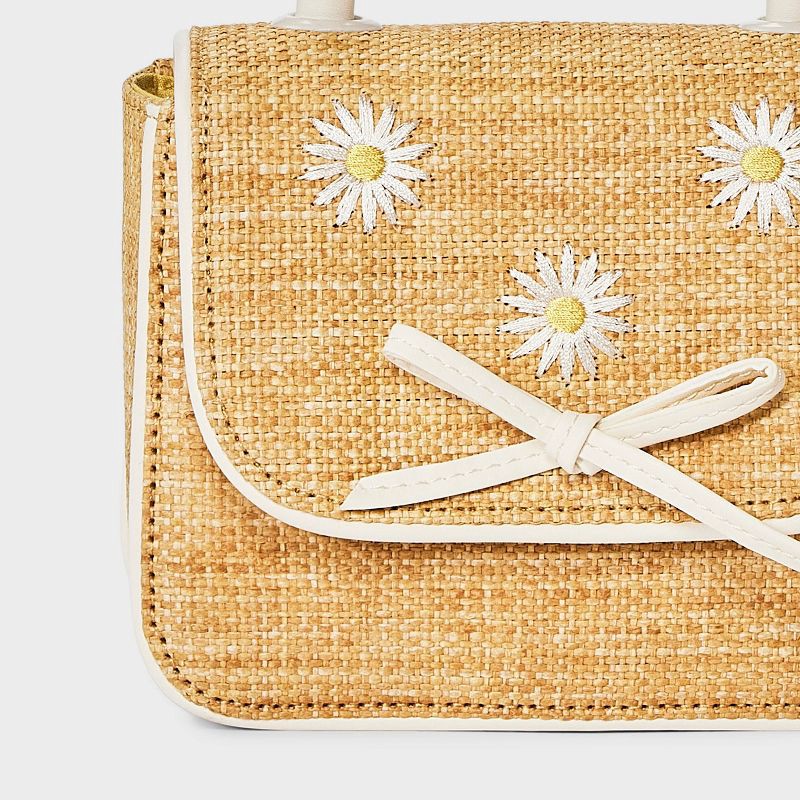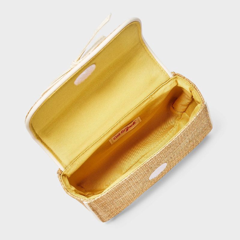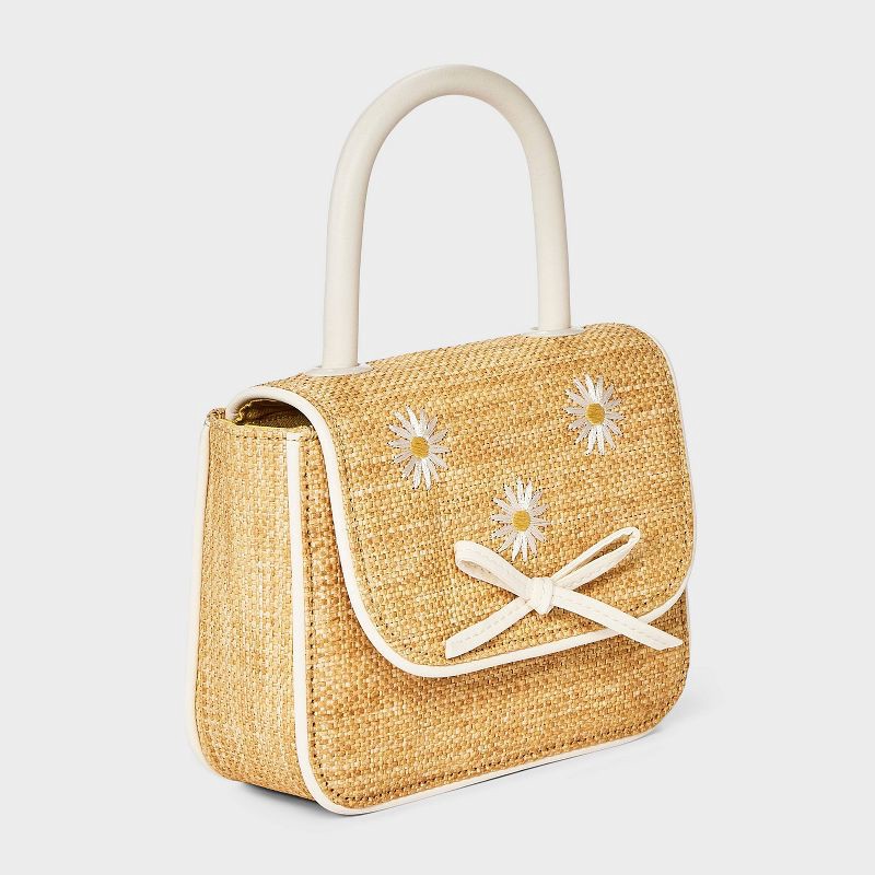 This Daisy Straw Purse from Cat & Jack™ adds a cute finishing touch to your little one's outfit. This heather beige purse is woven from paper straw and accented with off-white faux-leather piping trim…