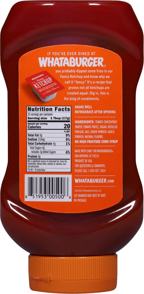 Your Everyday Fancy Favorite. Our burgers and fries made Whataburger Fancy ketchup famous in our restaurants and our fans still can't get enough of it. Our proprietary blend of fresh ingredients and s…