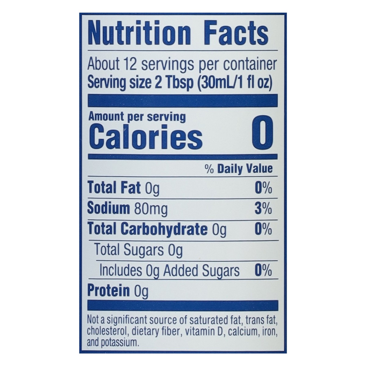 Water, Salt, Citric Acid, Acesulfame Potassium, Xanthan Gum, Potassium Sorbate (to Preserve Freshness), Sodium Benzoate (to Preserve Freshness), Sucralose Natural Flavors.