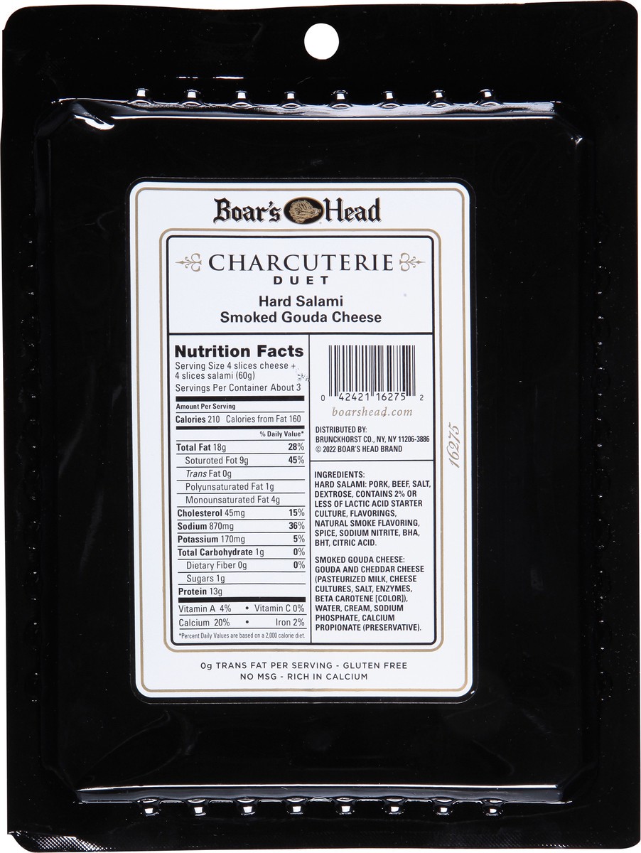 A premium & appealing pairing option, Boar's Head Charcuterie Duet consists of Boar's Head hard Salami & Smoked Gouda Cheese for a convenient, and delicious, charcuterie-board ready solution.