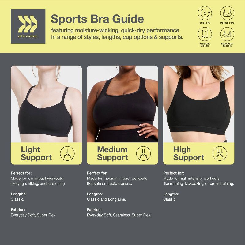 Why we're ALL IN:Solid-color sports bra with a zip-up front and lightly-lined cups. Provides maximum support suitable for high-intensity workouts. Made from recycled polyester-elastane blend fabric th…