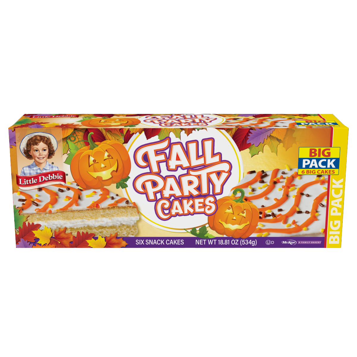 6 BIG, individually wrapped vanilla flavored hex cakes topped with white icing, orange stripes and a festive mix of sprinkles.