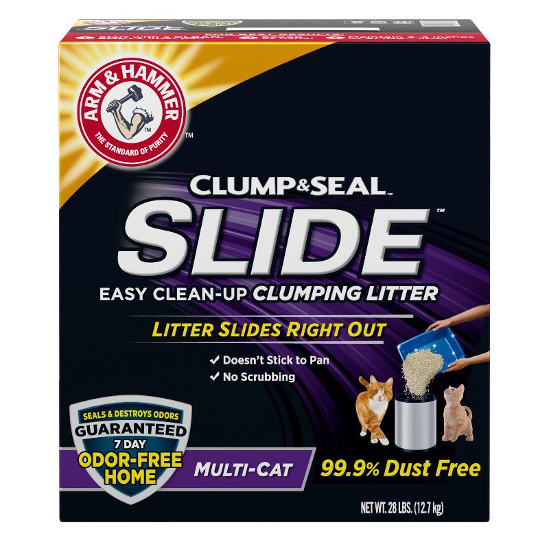 - ARM & HAMMER Clump & Seal SLIDE Easy Clean-Up Clumping Litter, 28 lb box