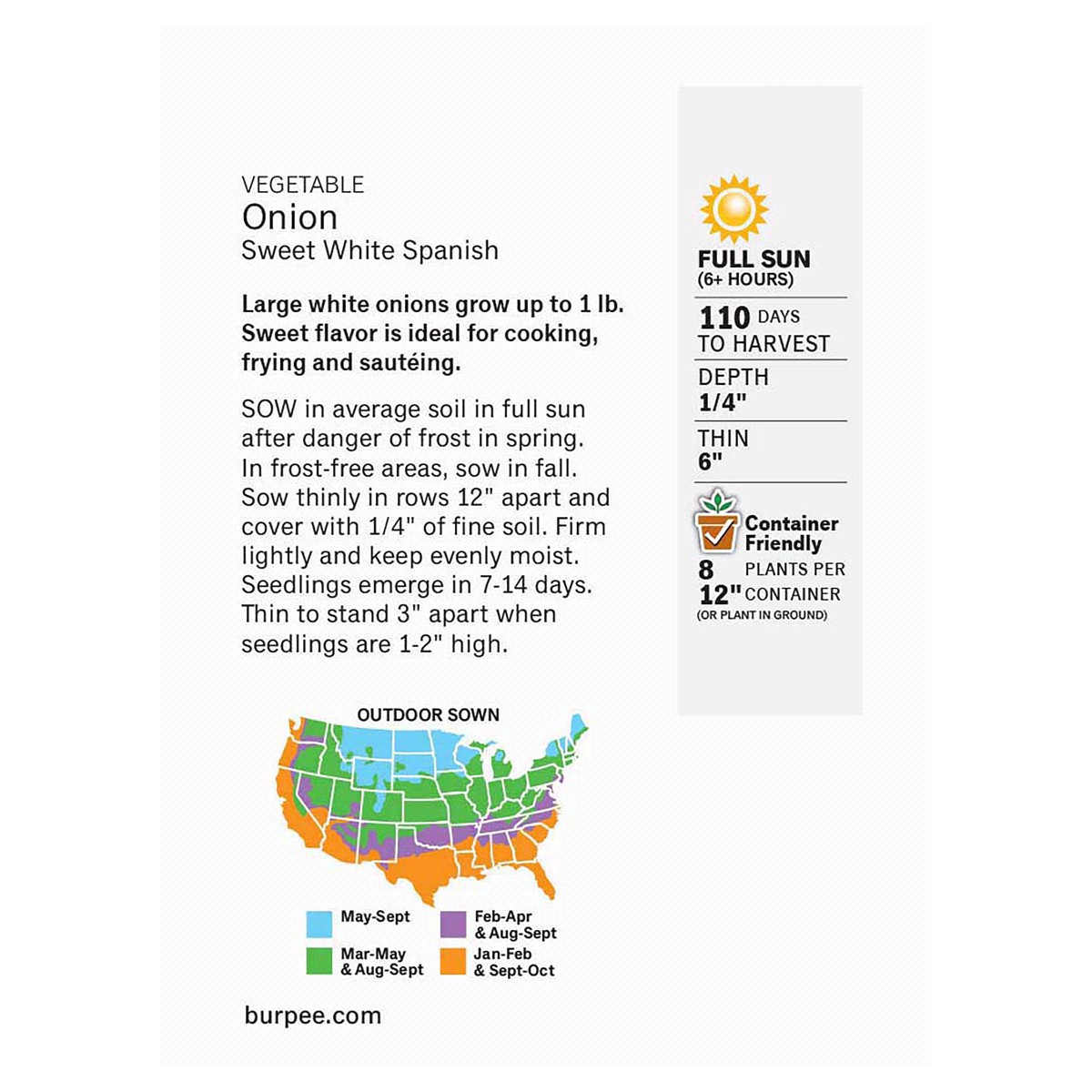 Large white onions grow up to 1 lb. Sweet flavor is ideal for cooking, frying and sauteeing.