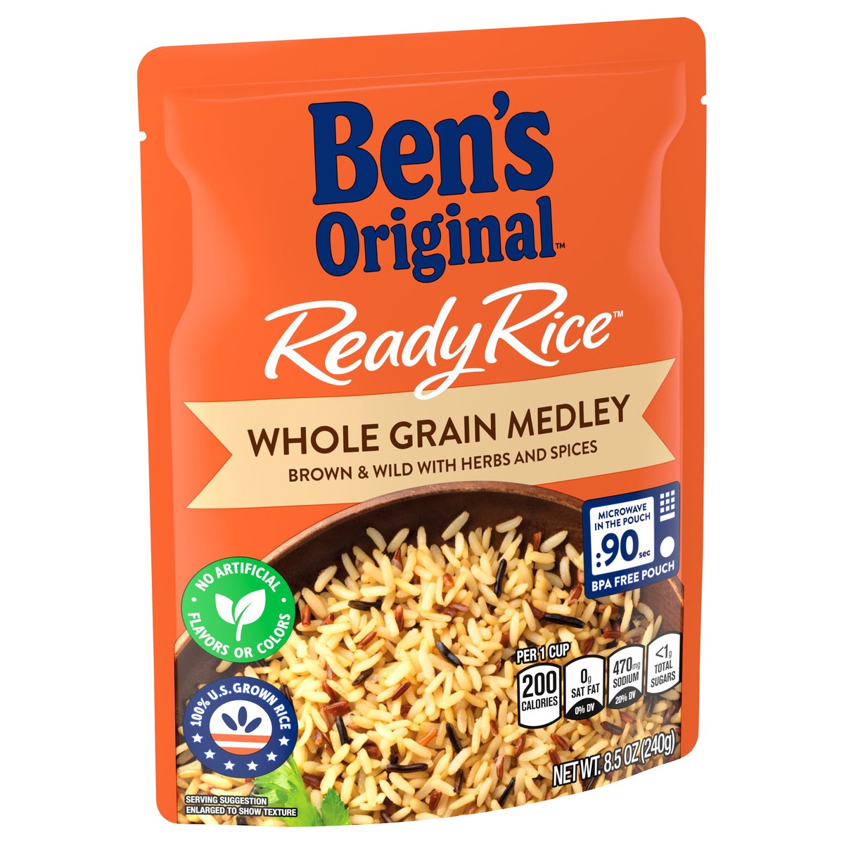 BEN'S ORIGINAL Ready Rice Whole Grain Medley provides a delicious savory mix of perfectly seasoned long grain rice in just 90 seconds. This microwave rice pouch offers a wholesome medley of whole grai…