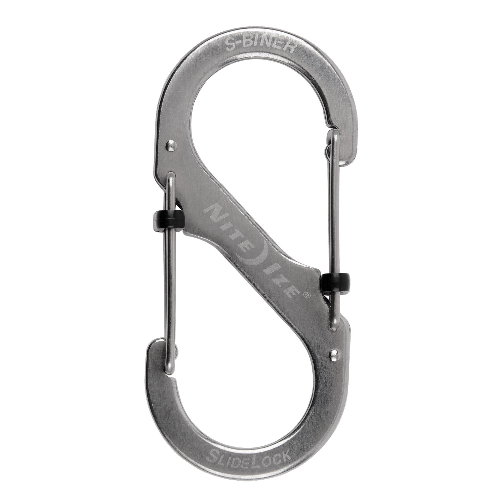 Locking S-shaped double-gated carabiner. High quality stainless steel construction. Secure stainless steel wire gates with SlideLocks to lock gates and secure contents. Gates can be independently lockā¦
