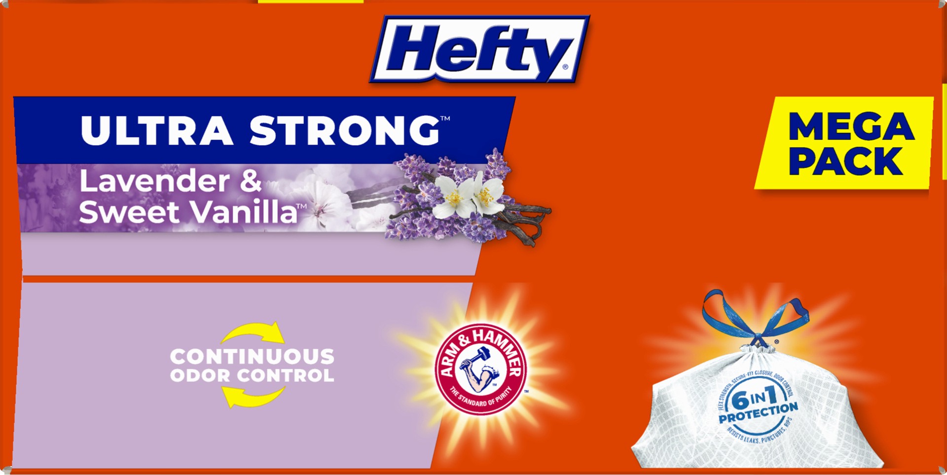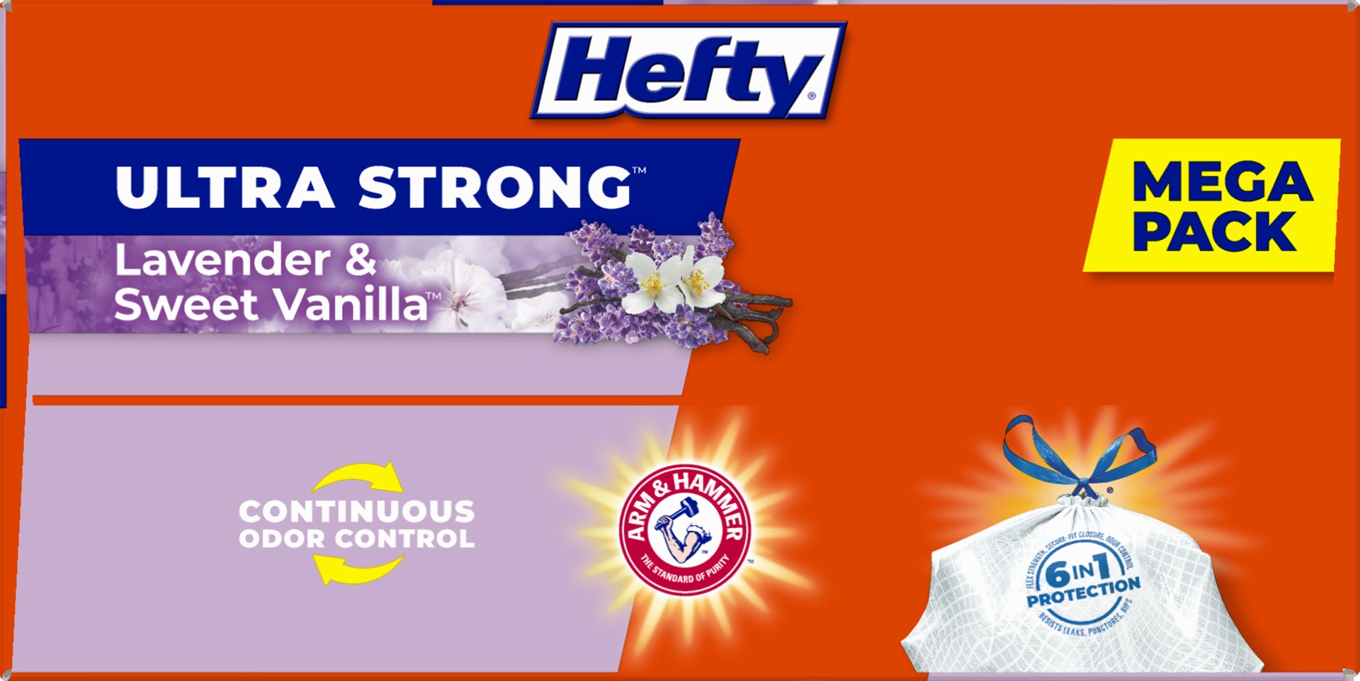 Hefty Trash Bags Drawstring Ultra Strong Tall 13 Gallon Lavender & Sweet Vanilla - 80 Count