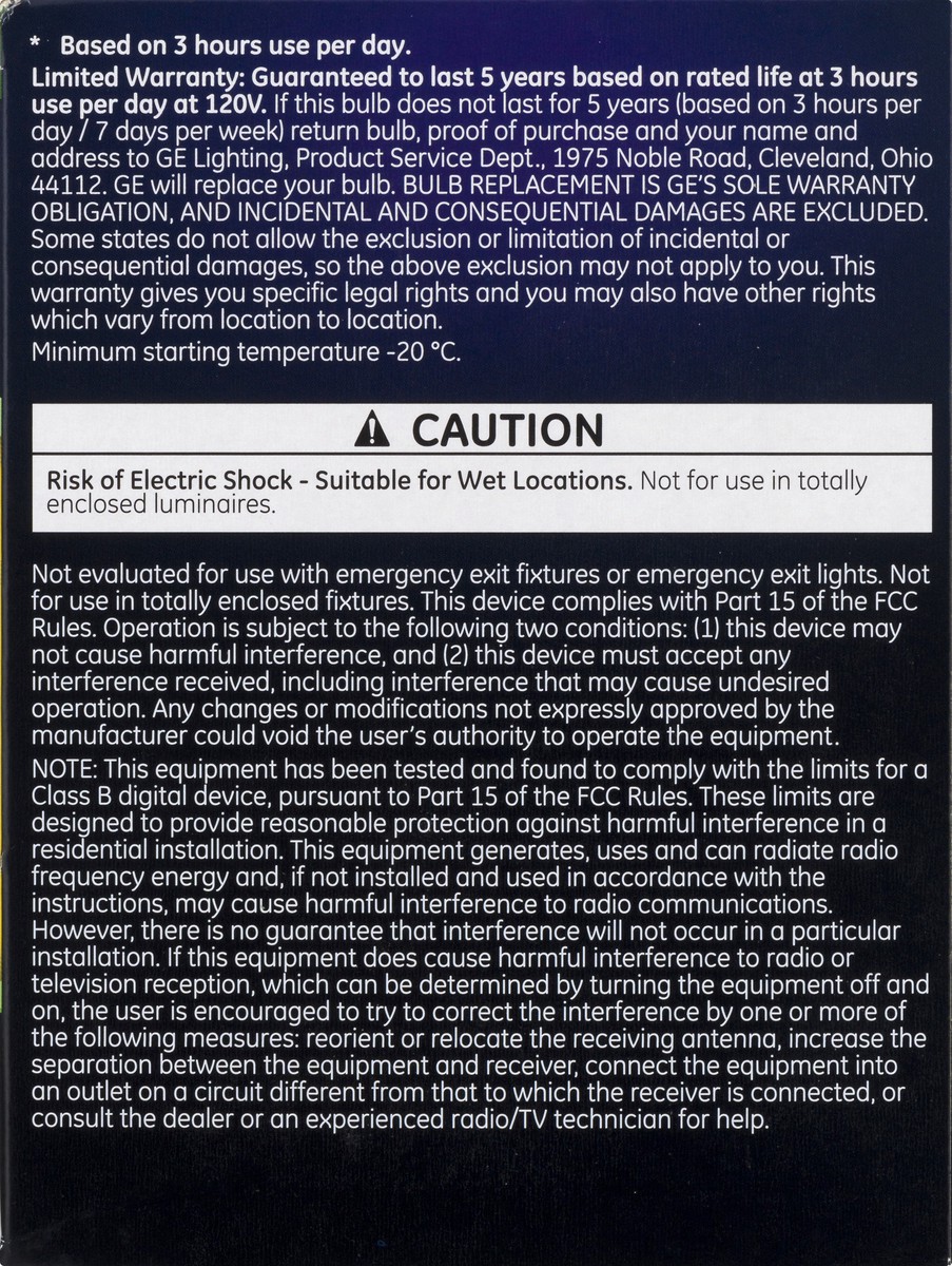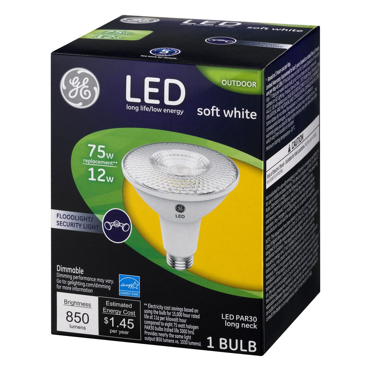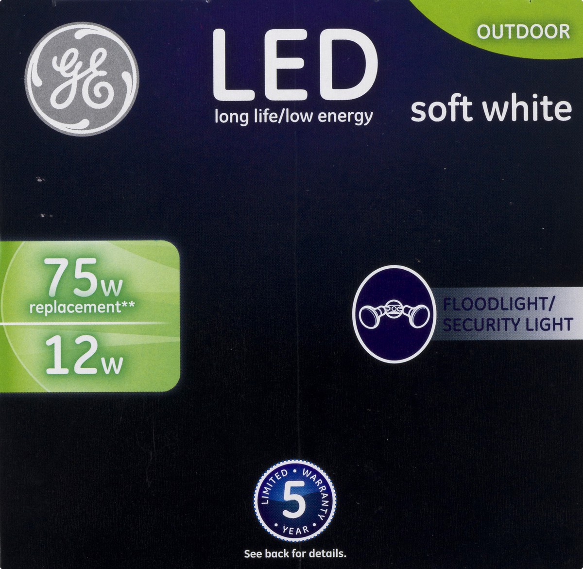 Outdoor. Long life/low energy. 75 watts replacement (Electricity cost savings based on using the bulb for 15, 000 hour rated life at 11 cent per kilowatt hour compared to eight 75 watt halogen PAR30 b…