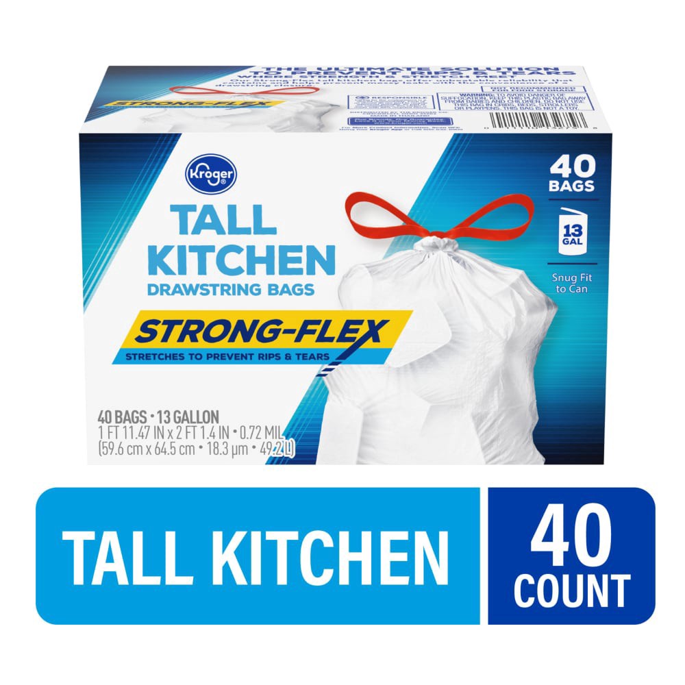 slide 3 of 3, Kroger Strong-Flex Unscented Tall Kitchen 13 Gallon Drawstring Bags, 40 ct