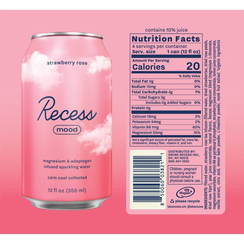 Recess Mood Strawberry Rose Sparkling Water with Magnesium L-Threonate - 4pk/12 fl oz