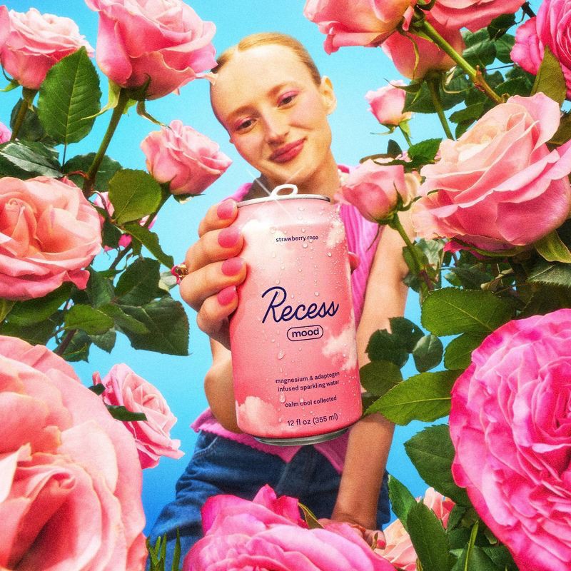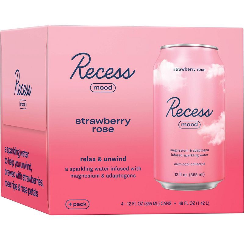 Recess Mood Strawberry Rose Sparkling Water with Magnesium L-Threonate - 4pk/12 fl oz