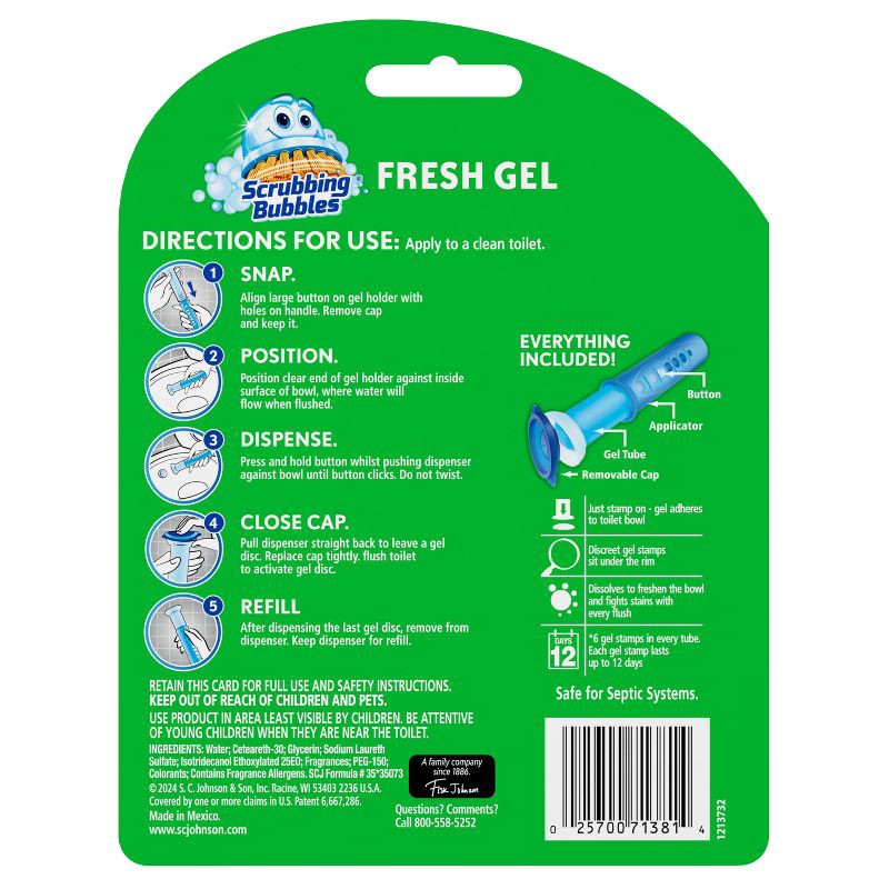 - Scrubbing Bubbles Fresh Gel Toilet Stamps freshens and cleans with every flush*