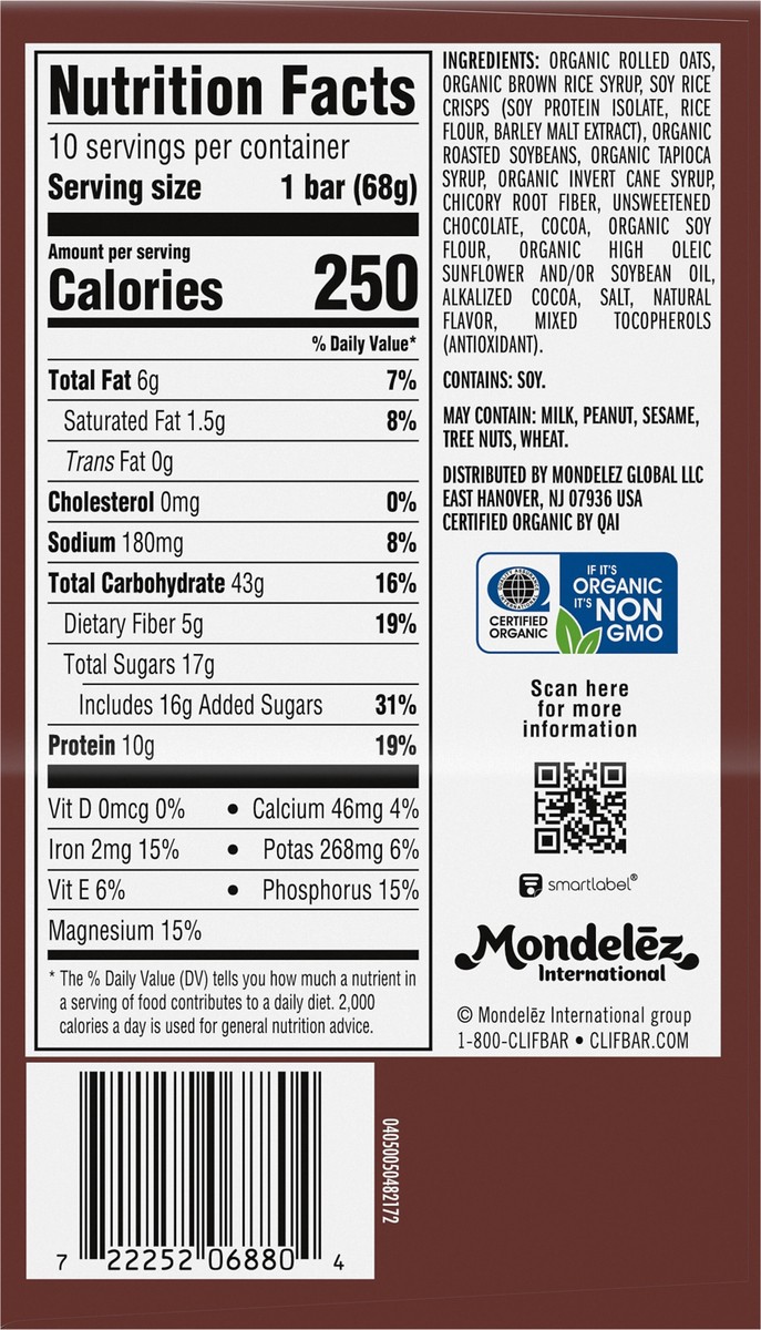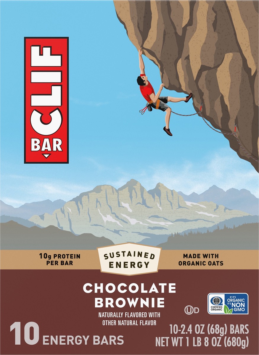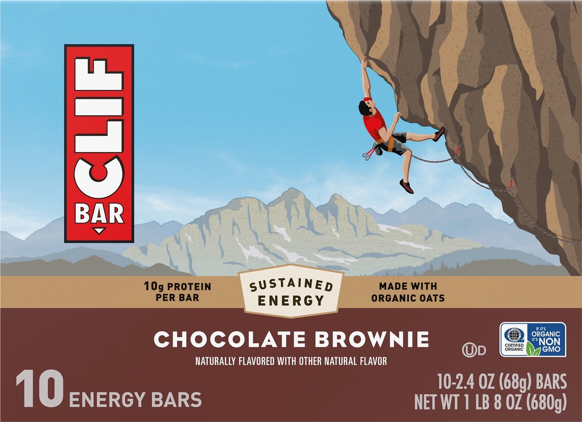 CLIF BAR - Chocolate Brownie Flavor - Made with Organic Oats - Energy Bars - Non-GMO - Plant Based Protein Bars (10 Pack)