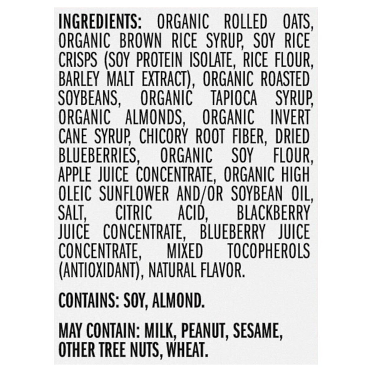 INGREDIENTS: ORGANIC ROLLED OATS, ORGANIC BROWN RICE SYRUP, SOY RICE CRISPS (SOY PROTEIN ISOLATE, RICE FLOUR, BARLEY MALT EXTRACT), ORGANIC ROASTED SOYBEANS, ORGANIC TAPIOCA SYRUP, ORGANIC CANE SYRUP,…