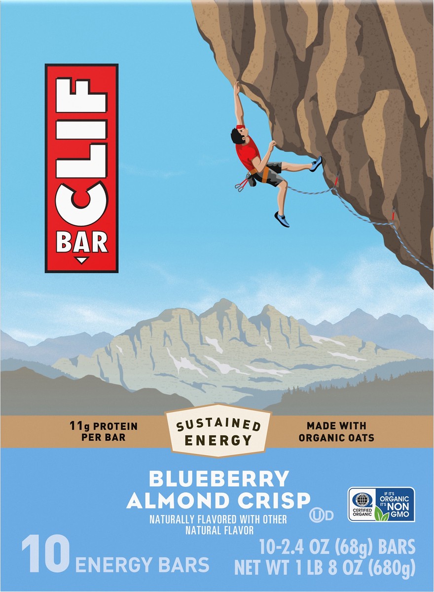 CLIF BAR - Blueberry Almond Crisp - Made with Organic Oats - Energy Bars - Non-GMO - Plant Based Protein Bars (10 Pack)
