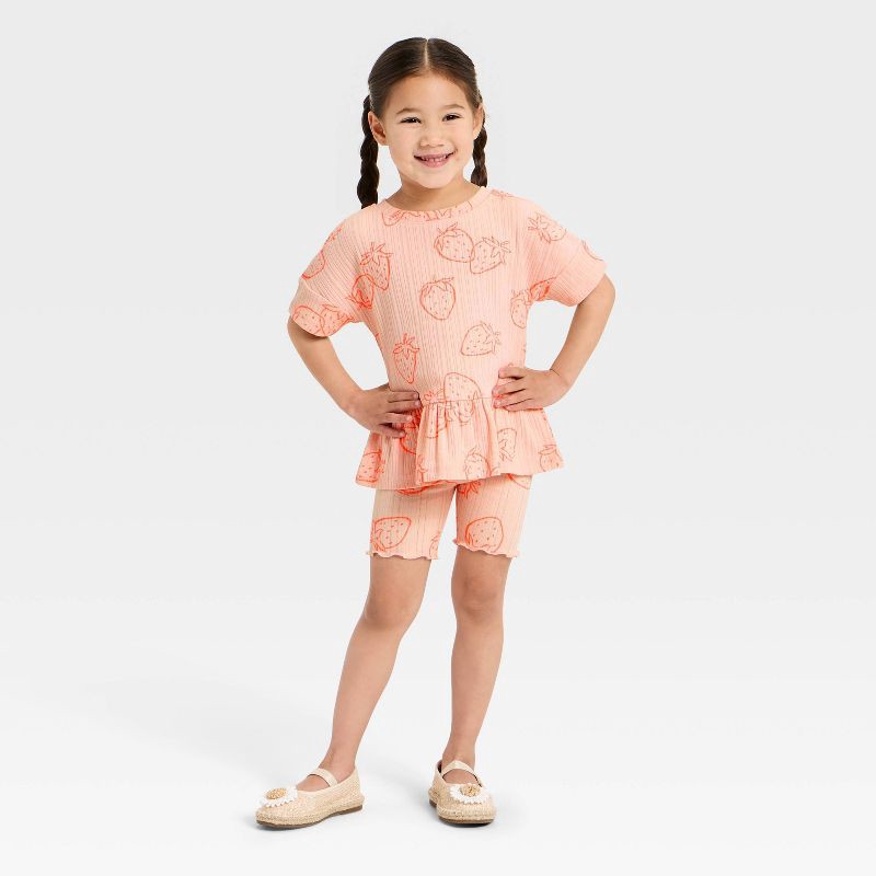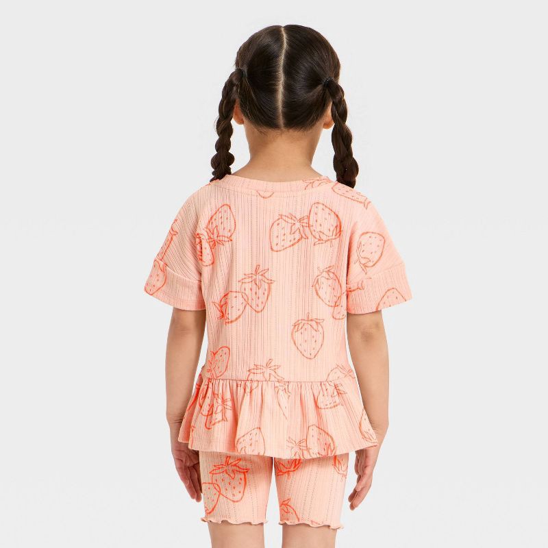 Toddler Girls' Strawberries Pointelle Peplum T-Shirt - Cat & Jack™ Pink 2T