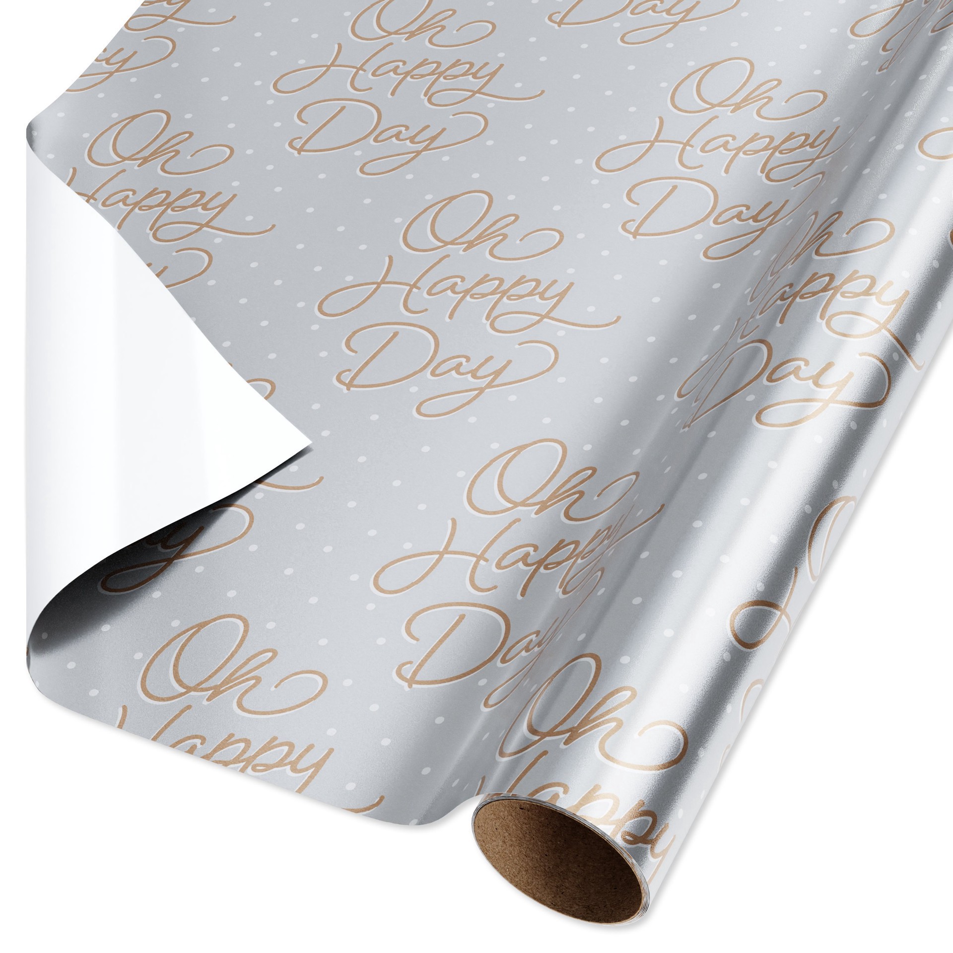 Celebrate love in style when you wrap wedding or bridal shower gifts in this beautiful Silver Foil Roll Wrap! Fun and decorative script reading “Oh Happy Day” highlights the design and adds a festive …