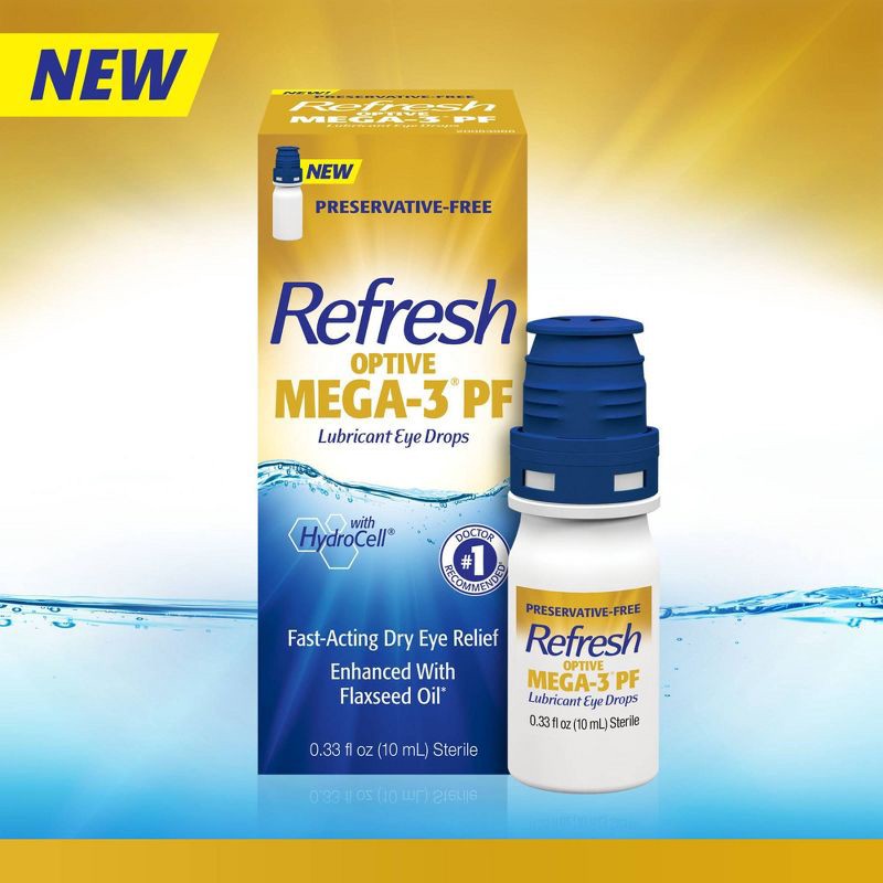 Refresh Optive Mega -3 PF Lubricant Eye Drops Preservative-Free Artificial Tears - 0.33 fl oz (10mL)