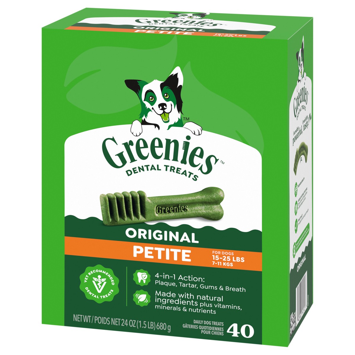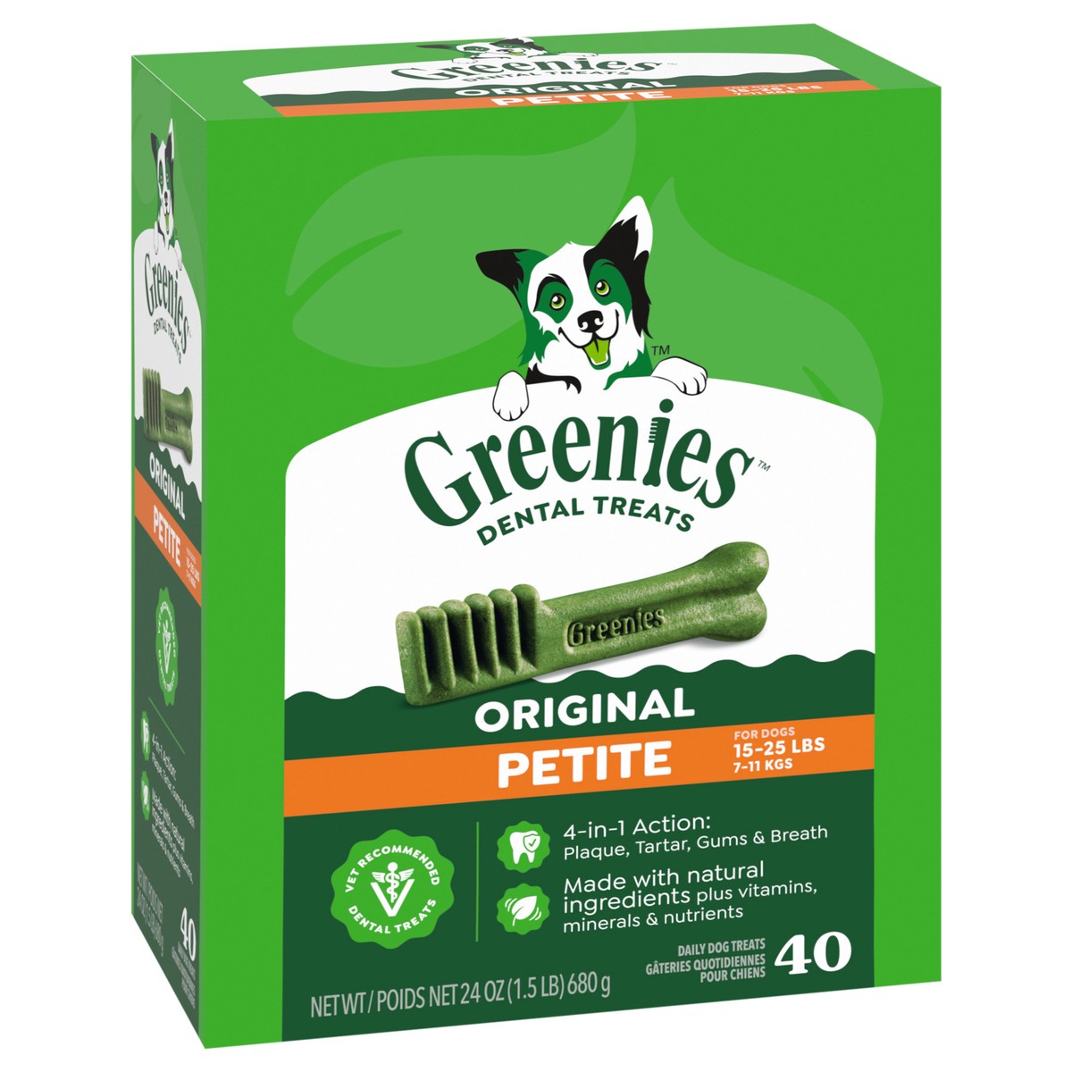 Greenies Adult Natural Dental Dog Treats Petite Size, Original Flavor, 40 ct