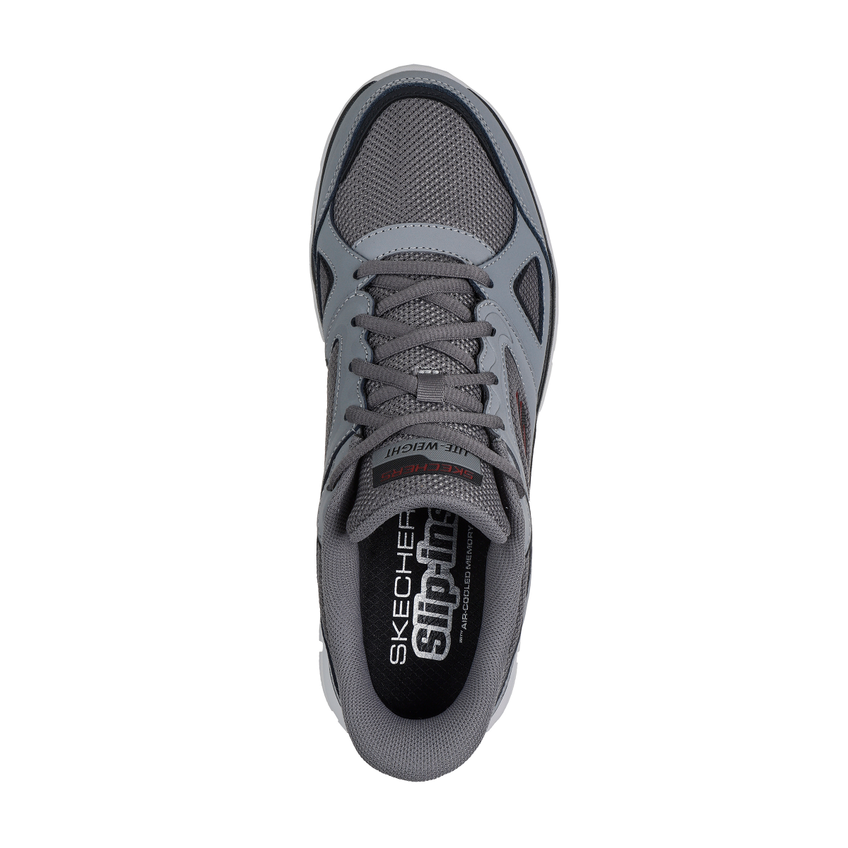 Train in lightweight comfort and sporty style wearing Skechers Hands Free Slip-ins®: Track - Ezral. Designed with our exclusive Heel Pillow, this sleek style features a mesh upper with leather and syn…