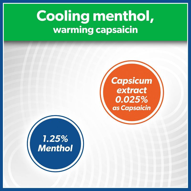 - Menthol starts to cool on contact, while Capsaicin creates a warming sensation.