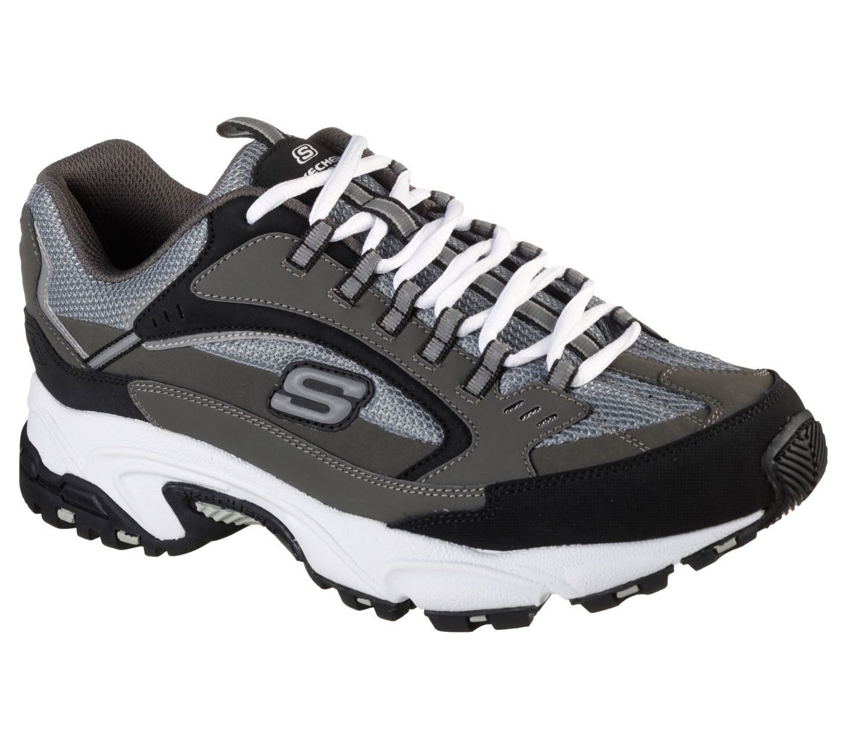 Hit the trails in athletic comfort with Skechers Stamina - Cutback. This lace-up hiking trail design features a leather, synthetic and mesh upper with a Skechers Memory Foam insole.