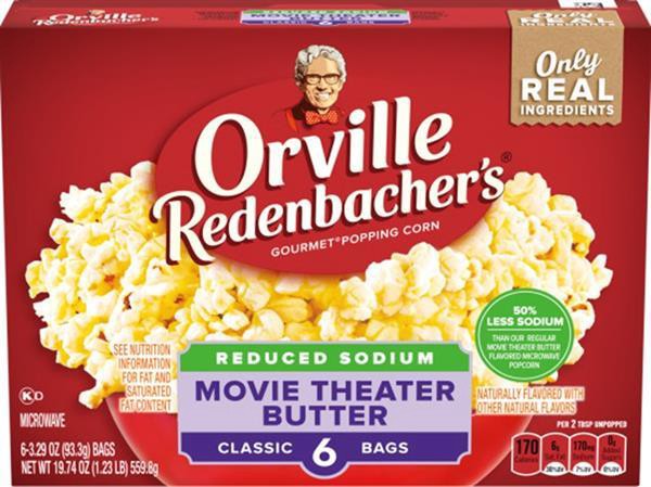 Enjoy a delicious popcorn snack with all the rich, buttery flavor you love and less sodium that you don't with Orville Redenbacher's Reduced Sodium Movie Theater Butter Naturally Flavored With Other N…