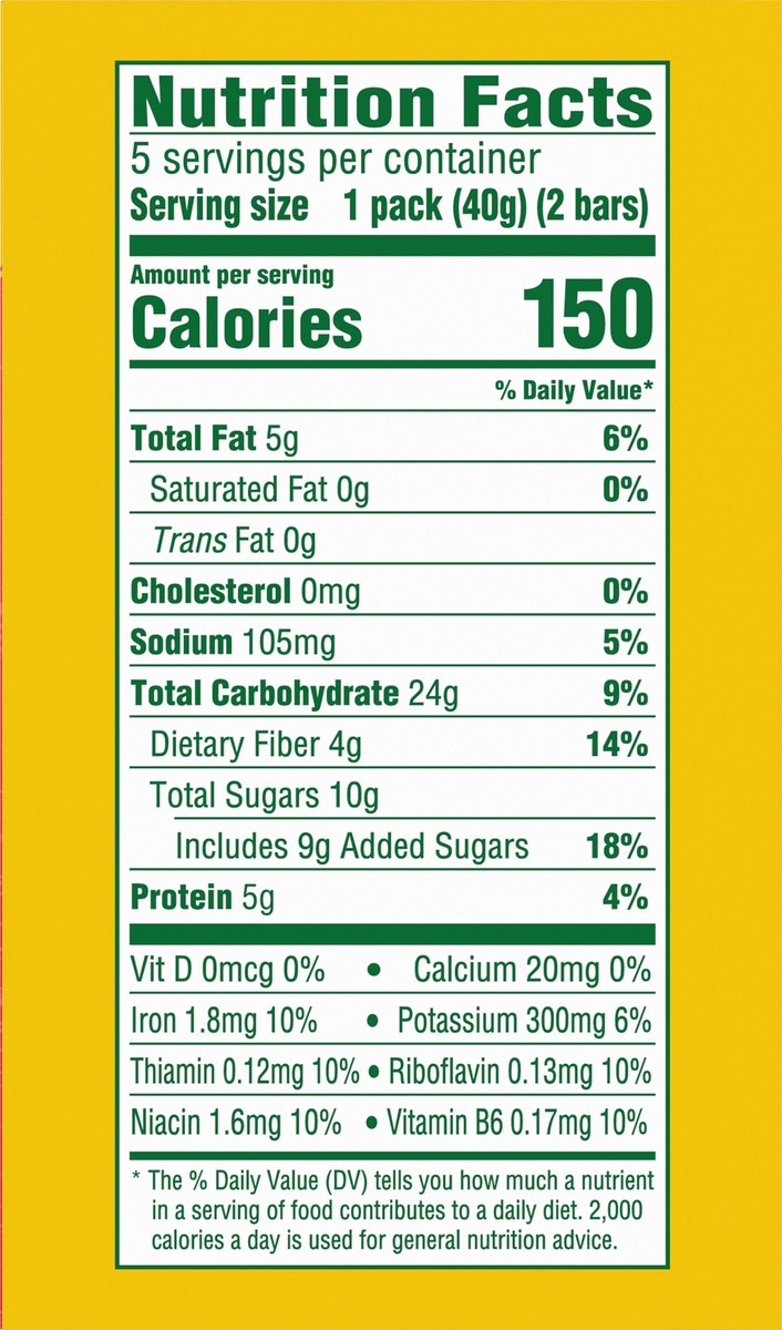 - Cholesterol-free breakfast snack bars with no high-fructose corn syrup and no artificial colors or flavors