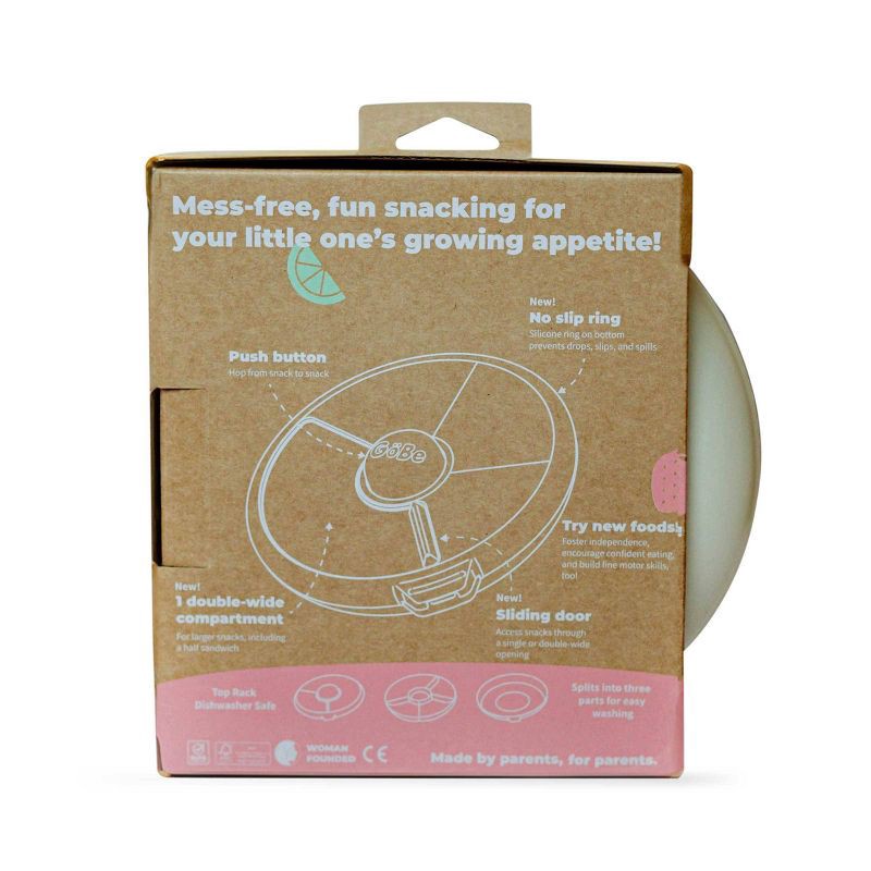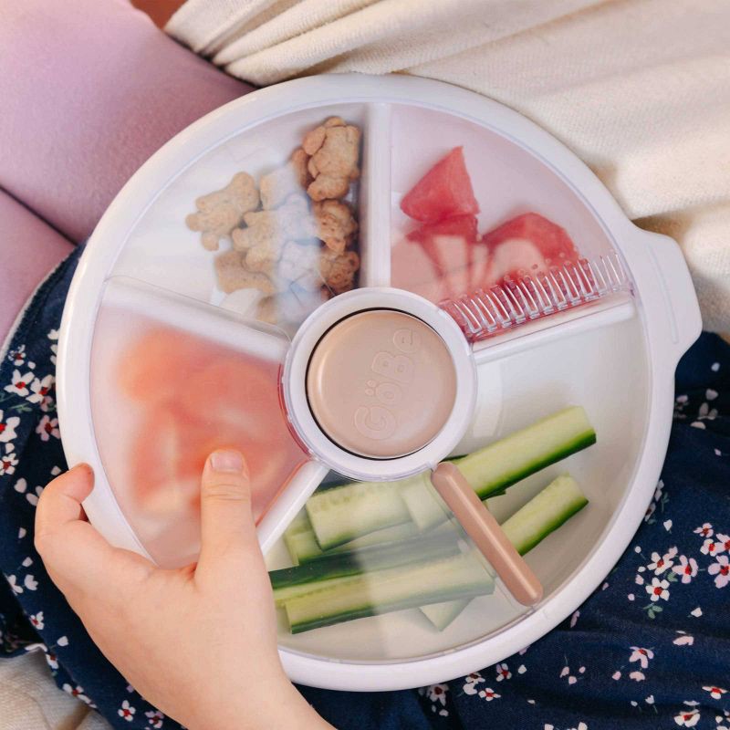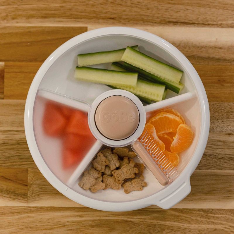 - Made from only the best materials, the GoBe Large Snack Spinner is BPA, PVC, phthalate-free and REACH compliant. Spill, mess, and leak-resistant snack container with 4 compartments to offer a variety of food options for lunch and snack time