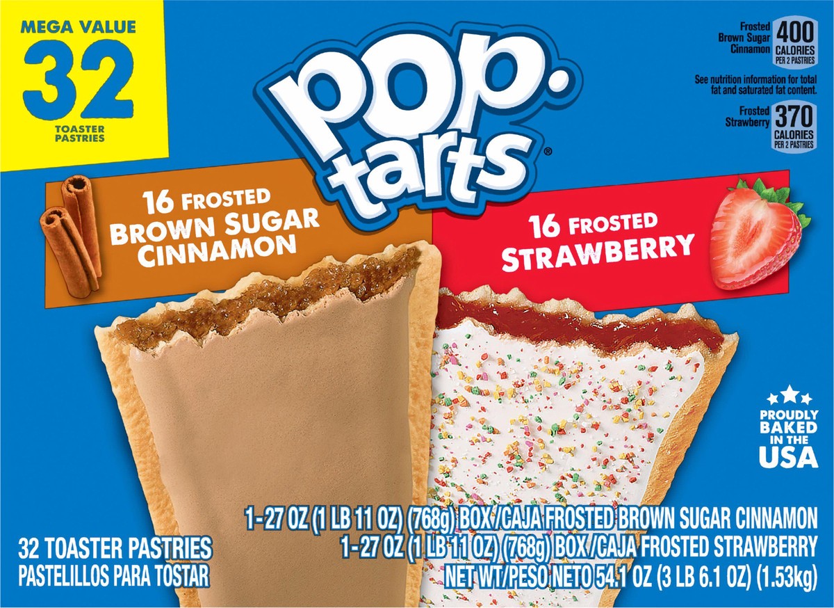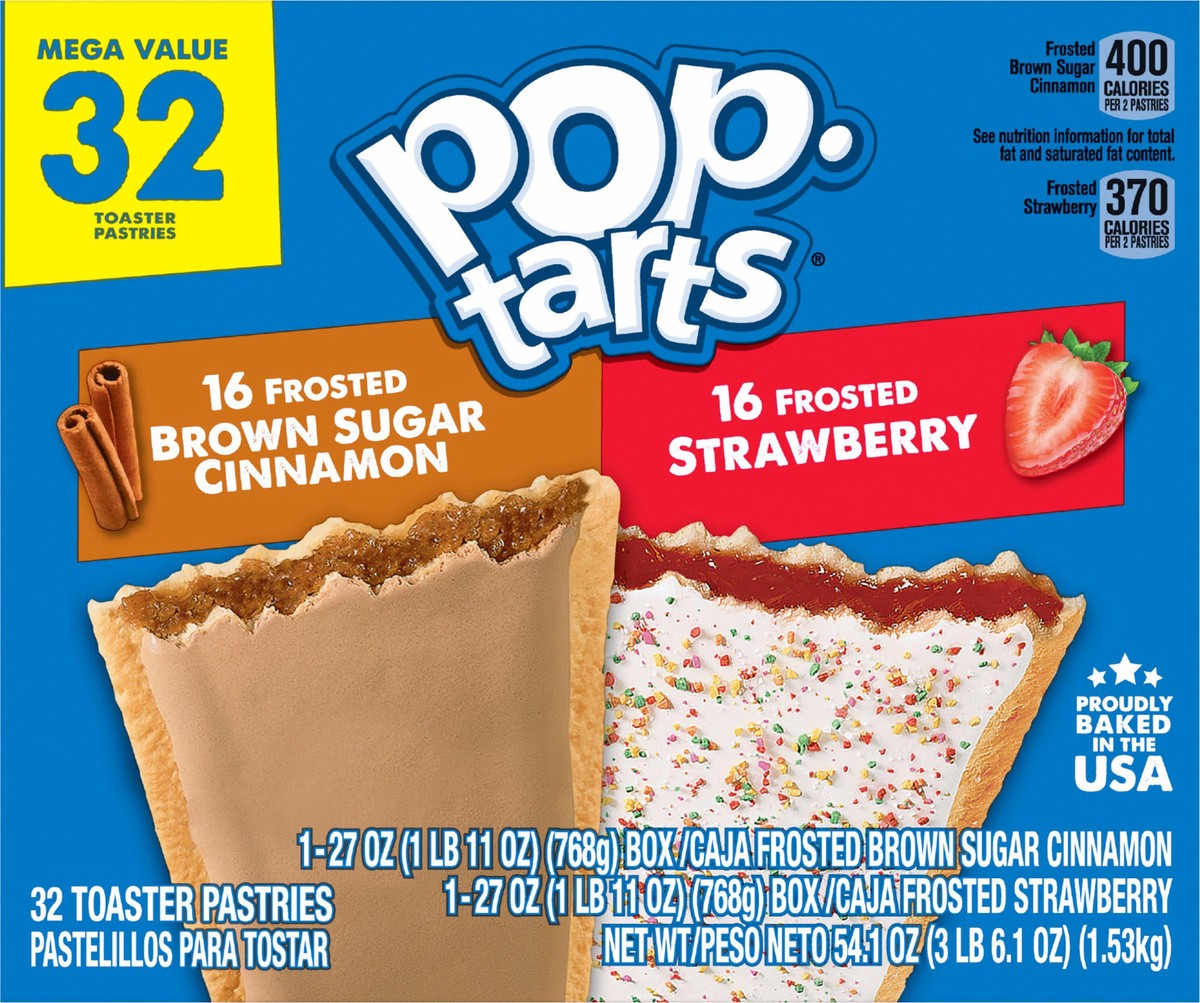 Pop-Tarts Frosted Strawberry and Frosted Brown Sugar Cinnamon toaster pastries are a delicious treat to look forward to any time of day. Jump-start your day with either a sweet, strawberry-flavored fi…