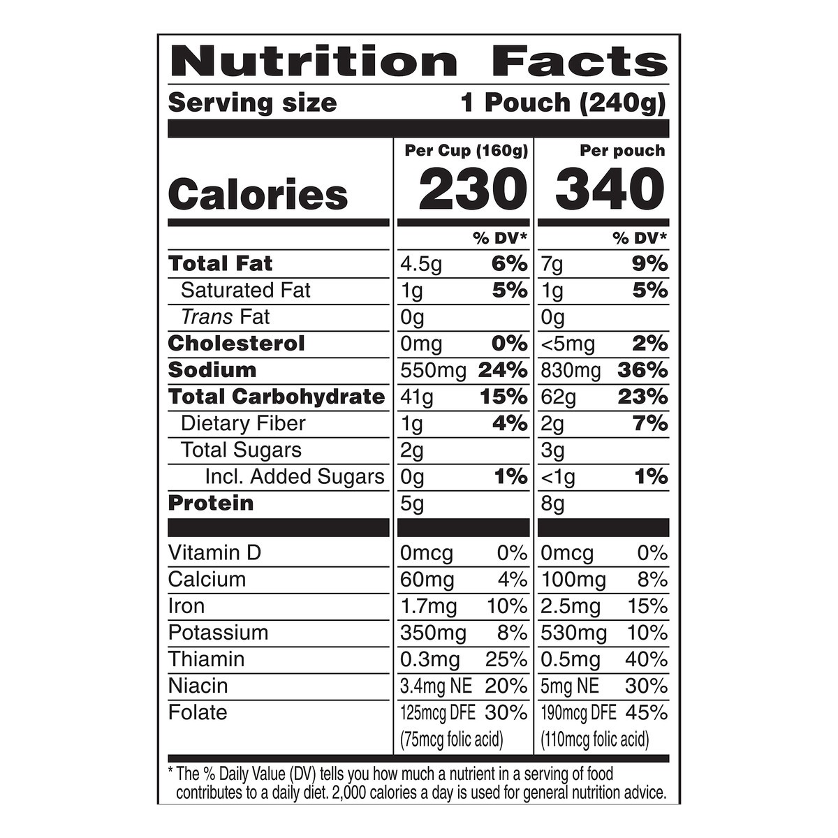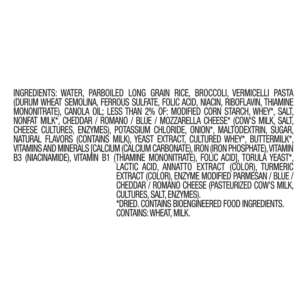 Water, Parboiled Long Grain Rice, Broccoli, Vermicelli Pasta (Durum Wheat Semolina, Ferrous Sulfate, Folic Acid, Niacin, Riboflavin, Thiamine Mononitrate), Canola Oil; Less than 2% of: Modified Corn S…