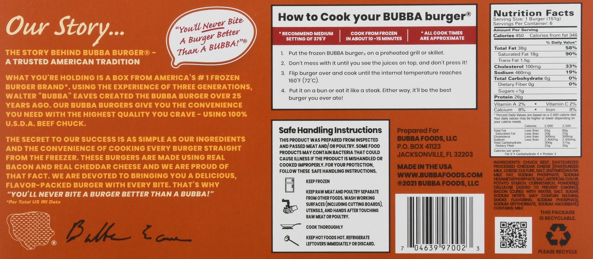 What do we mean when we say, “You''ll never bite a burger better than a BUBBA!” ? We make the Bacon Cheddar BUBBA burger using only 100% USDA beef chuck, then we mix in real bacon and cheddar to make…