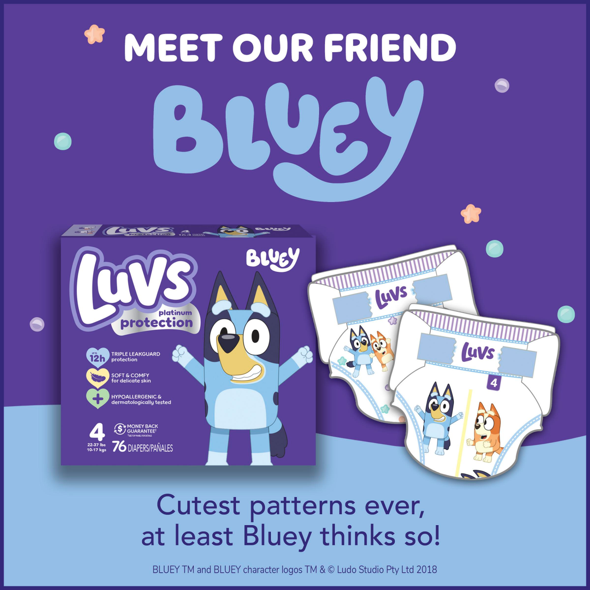 Introducing Luvs Platinum Protection featuring Bluey! Luvs disposable diapers are now better than ever* and have up to 12-hours of Triple Leakguard Protection. But our leak protection doesn't stop the…