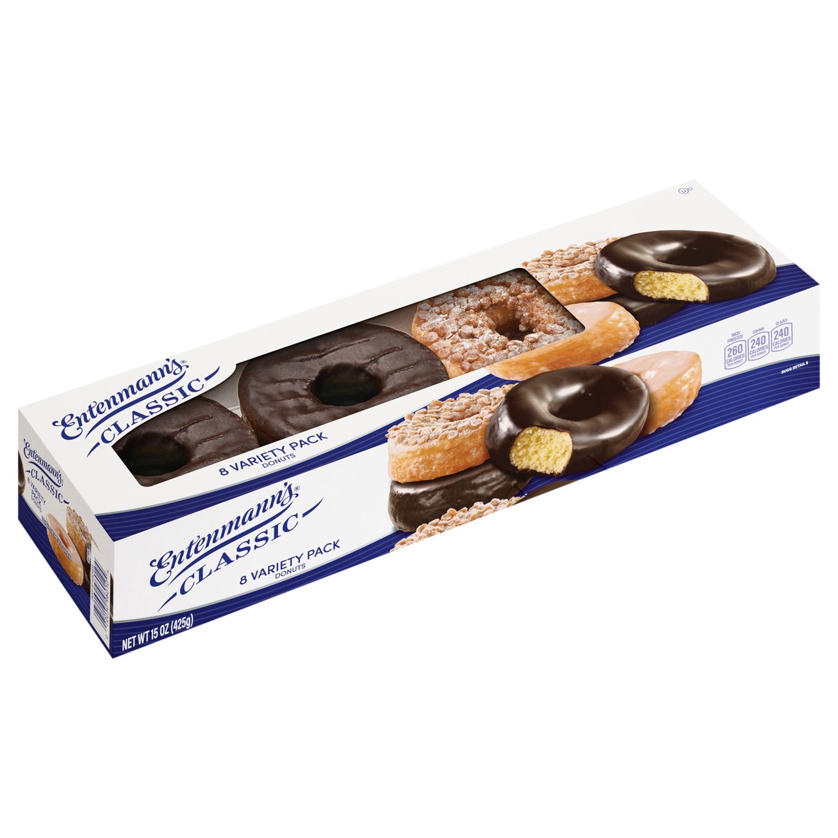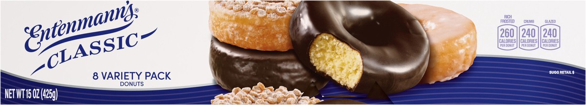 Entenmann''s Classic Assorted Donuts, 8 count, Kosher Rich Frosted, Crumb, Glazed Assorted Doughnuts, 15 oz Box