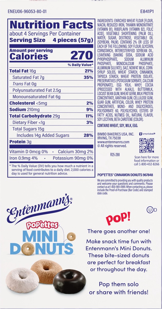 Entenmann''s Pop''ettes Cinnamon Mini Donuts, 9 oz, Box