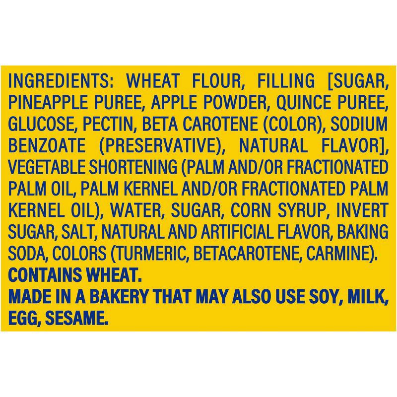 Wheat Flour, Filling [Sugar, Pineapple Puree, Apple Powder, Quince Puree, Glucose, Pectin, Beta Carotene (Color), Sodium Benzoate (Preservative), Natural Flavor], Vegetable Shortening (Palm and/or Fra…