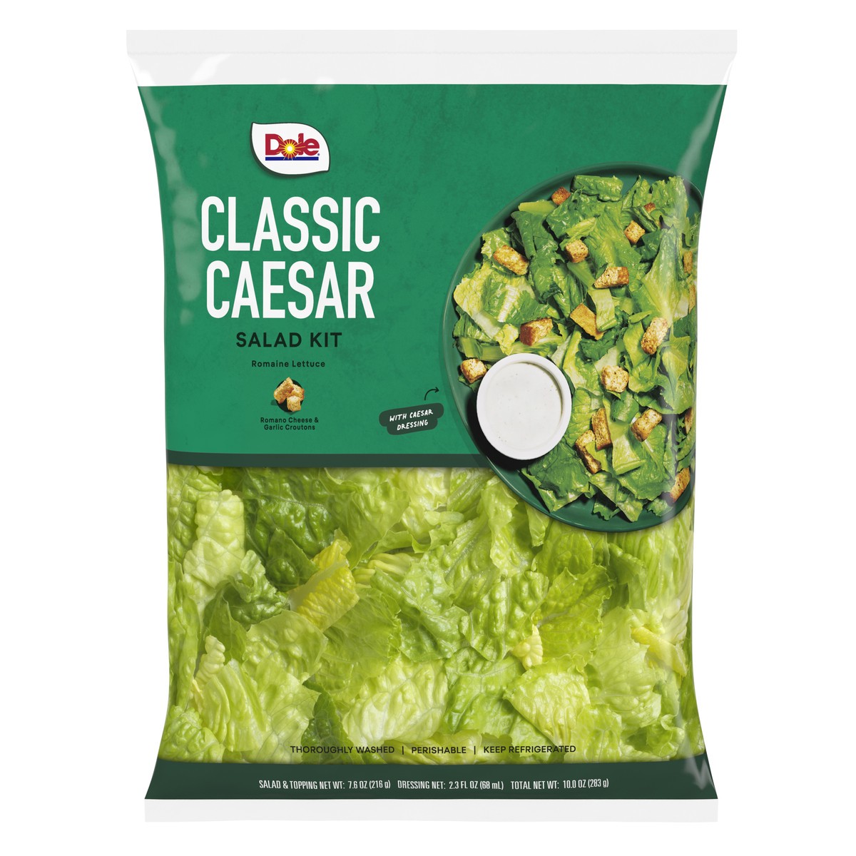 This everyday classic includes crisp romaine lettuce, crunchy garlic croutons, and Dole's Caesar dressing.