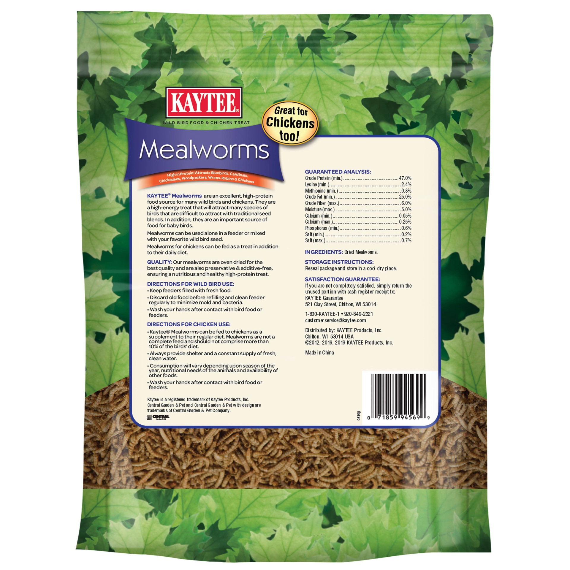 Kaytee Mealworm Food Pouch for Wild Birds, 17.6 Ounces