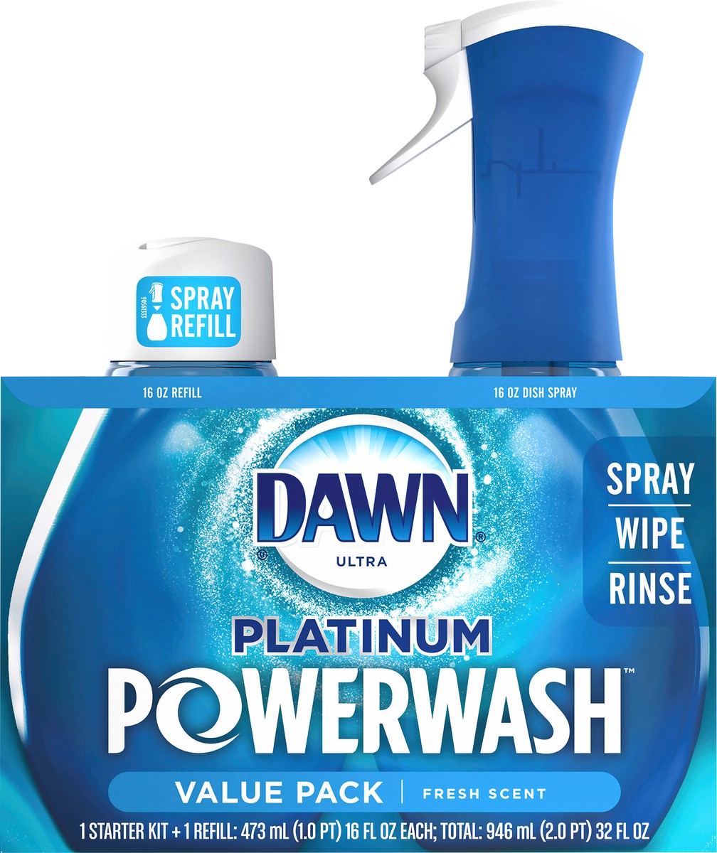 Dawn Powerwash Spray, Dish Soap, Dishwashing Liquid, Fresh, 1 Starter Kit + 1 Refill, 2x16 Fl Oz