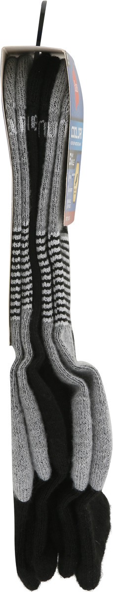 Helps keep moisture away. Wicking. Arch support. Breathable vent panels. Sport styling. Heels & toe cushioning. Please recycle. Paper products.