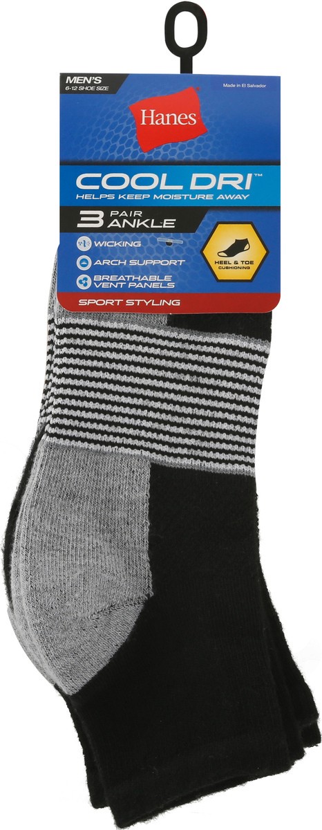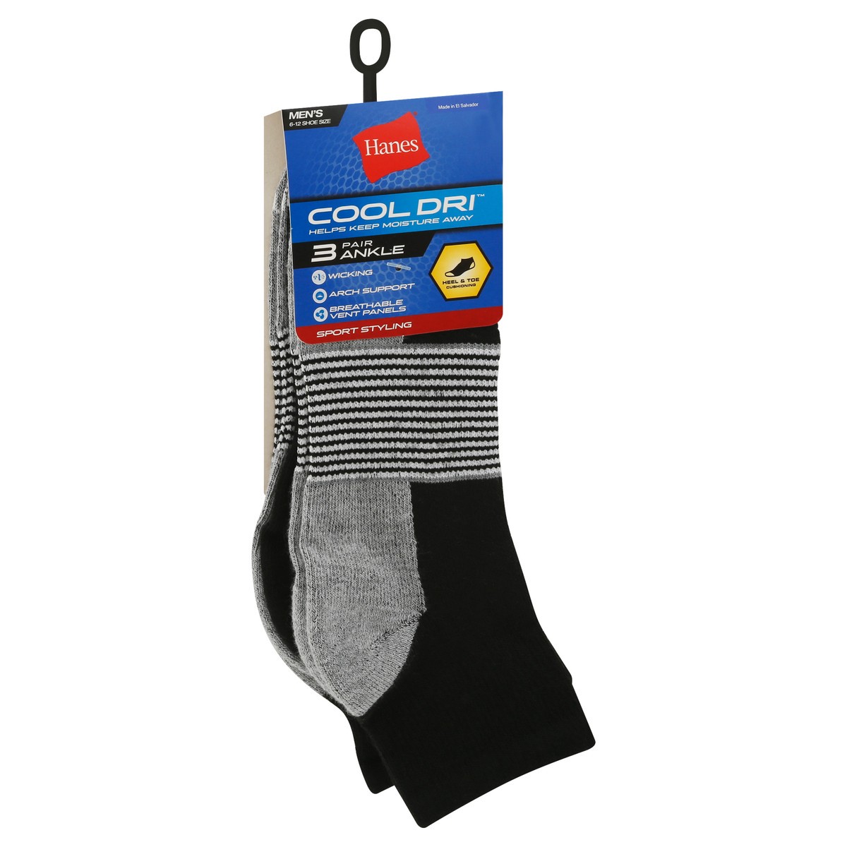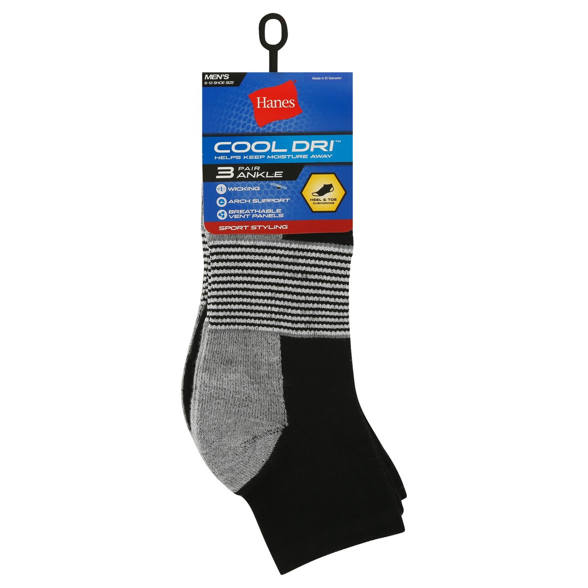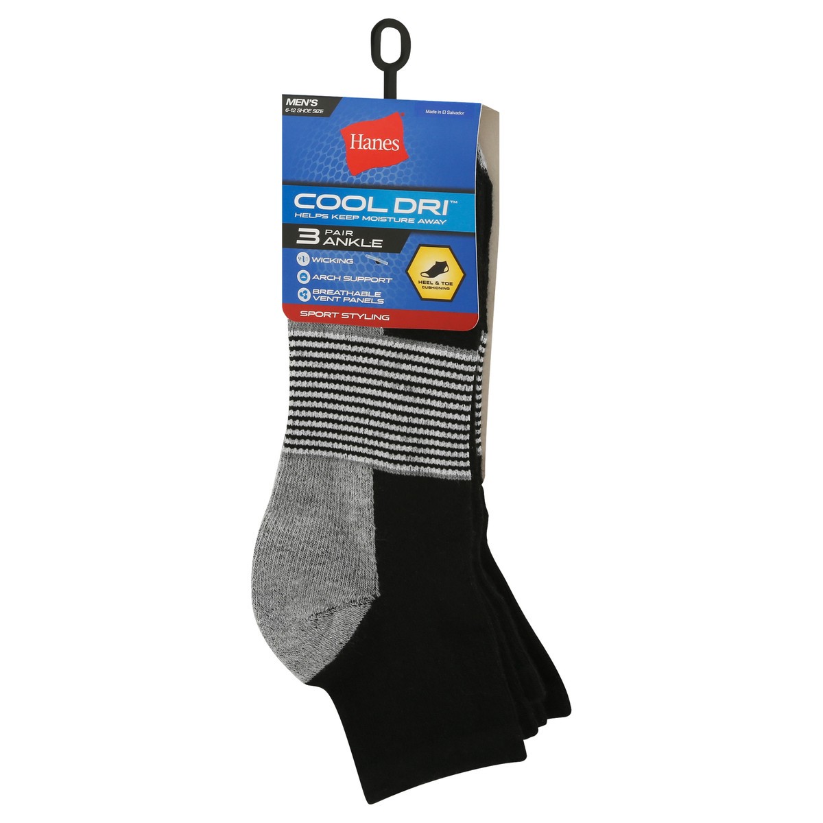 Hanes Cool Dri Men's Black Ankle Socks 3 ea
