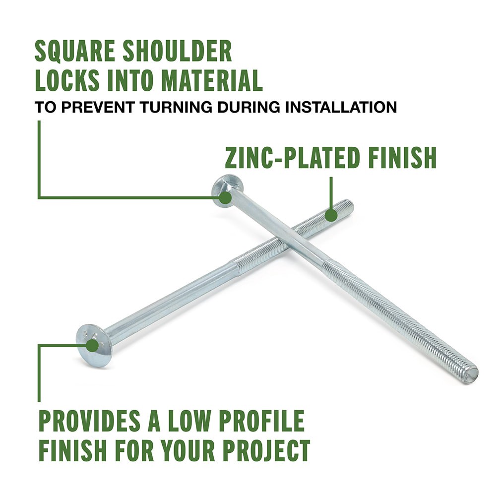 Carriage bolts are designed to fasten a wooden face to either wood or metal. The zinc plating is rust resistant and provides a beautiful, consistent finish, but, may not work for all exterior projects…