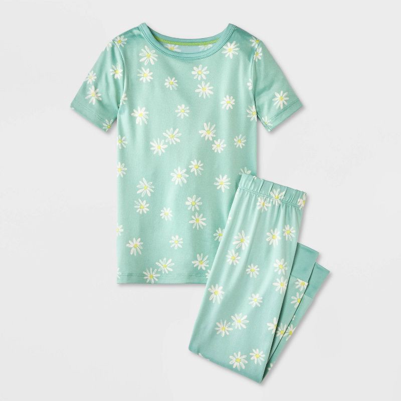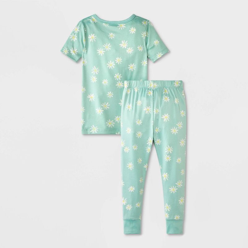Toddler 2pc Short Sleeve Smooth Jersey Daisies Snug Fit Pajama Set - Cat & Jack™ Green 2T