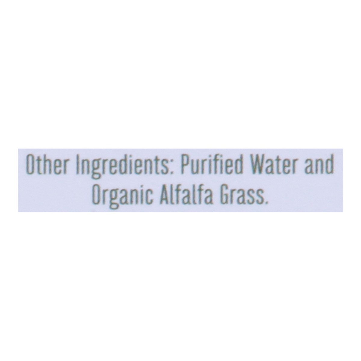 Proprietary Probiotic Blend: Bifidobacterium Lactis, Bifidobacterium Infantis, Bifidobacterium Bifidum, Lactobacillus Reuteri. Other Ingredients: Purified Water and Organic Alfalfa Grass.