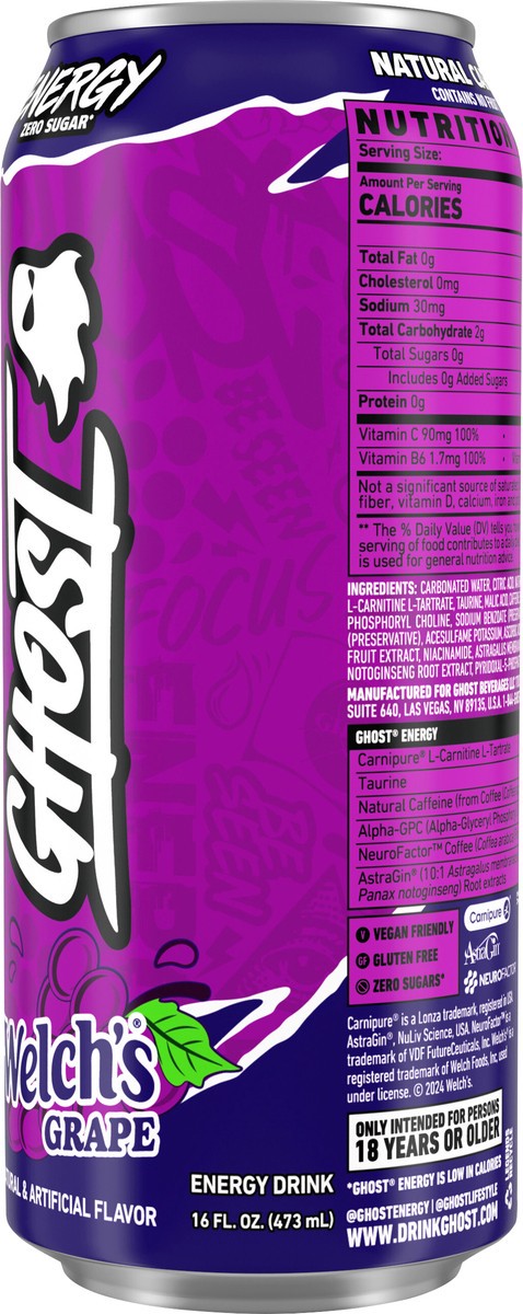 Ghost Energy Zero Sugar Energy Drink, Welch's Grape, 16 fl oz Can