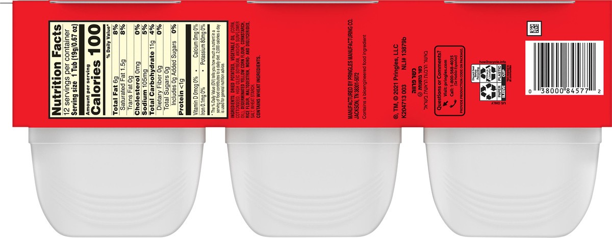 Pringles Potato Crisps Chips Original Lunch Snacks 12 Count - 8 Oz