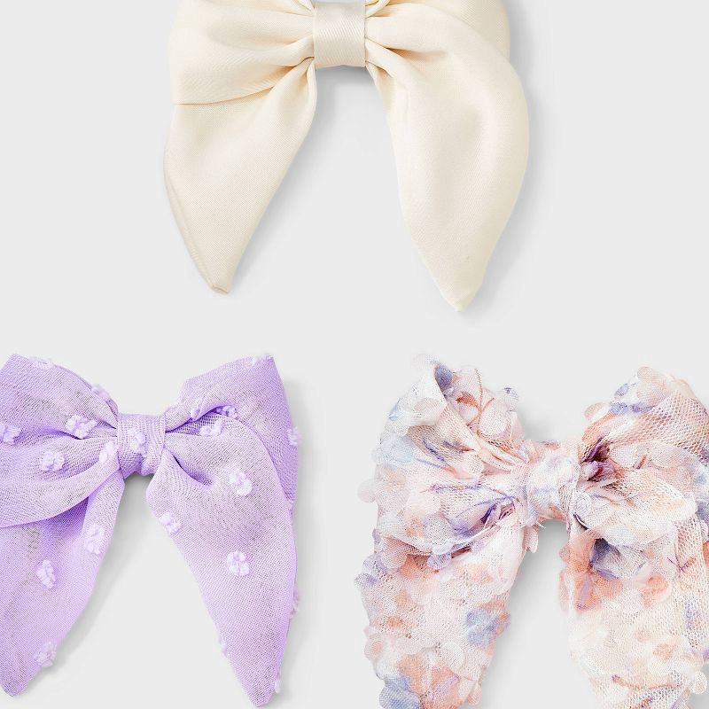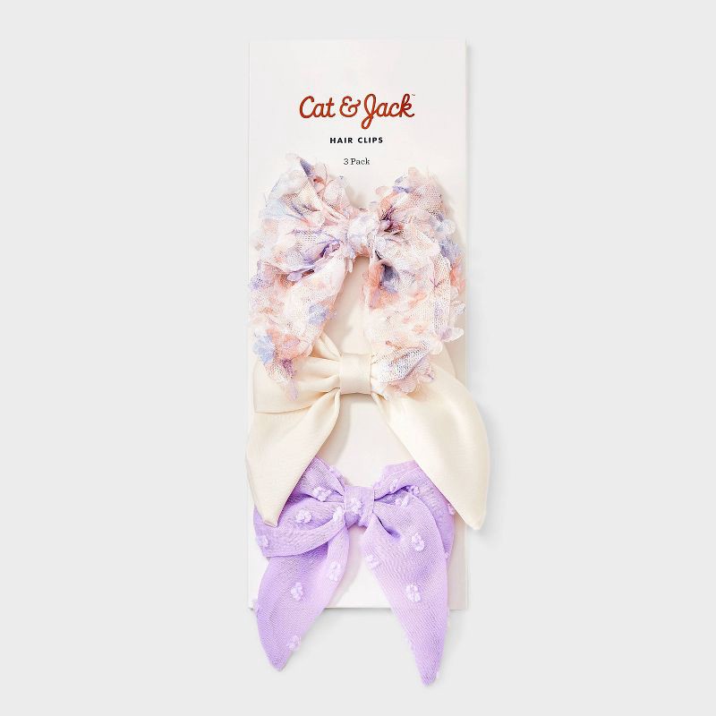 Girls' 3pk Assorted Bow Clip Set - Cat & Jack™ Pink/Purple/Cream