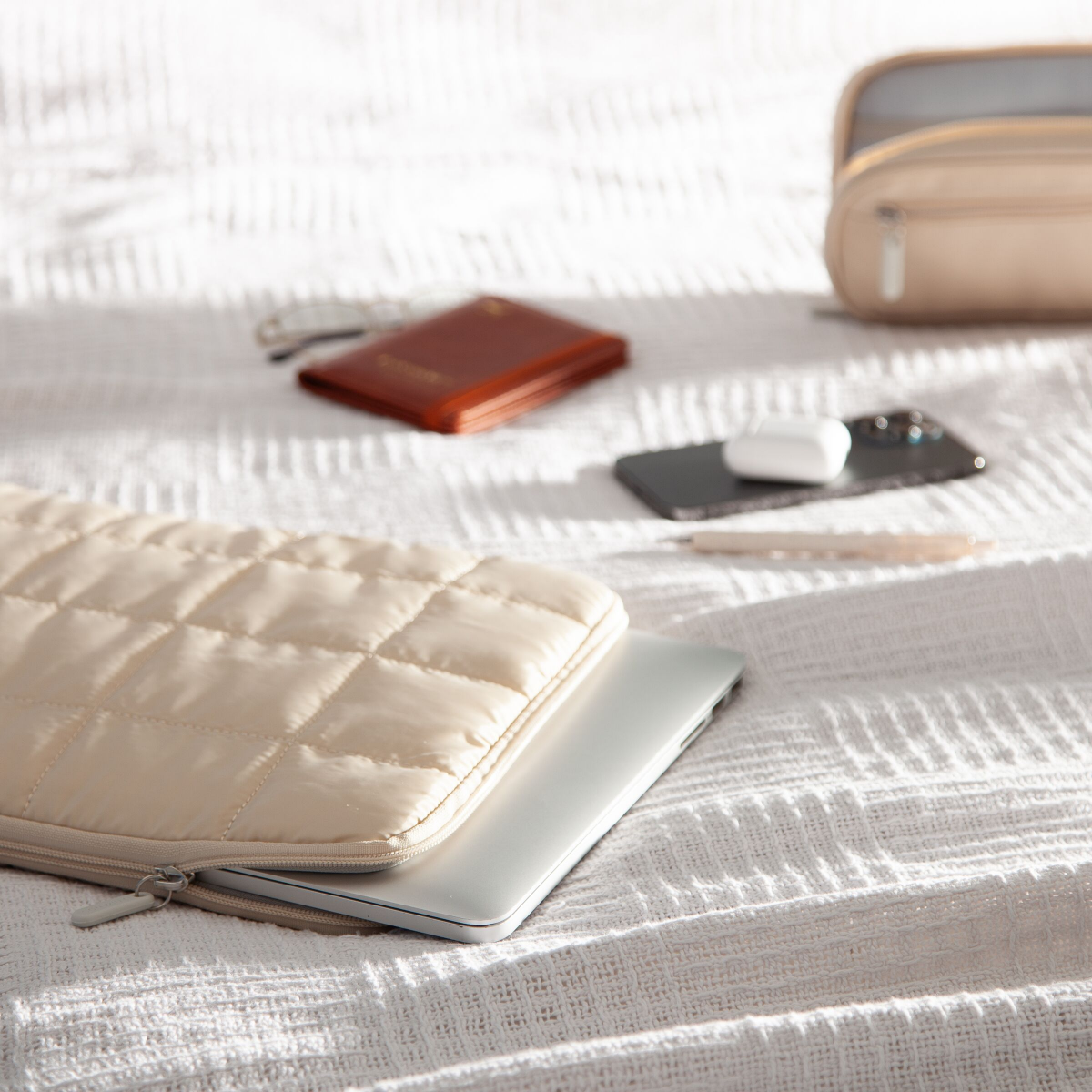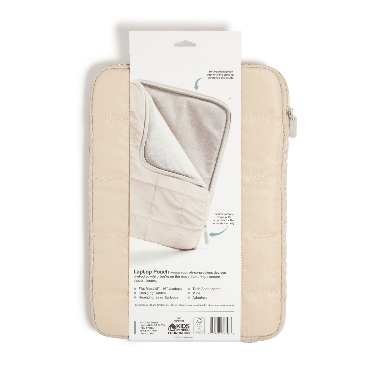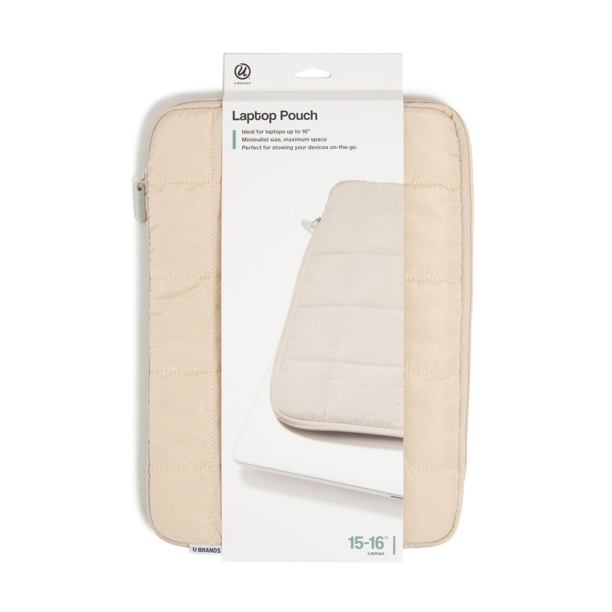U Brands Large Nylon Puffer Zipping Laptop Sleeve Case, 10.5" x 15", Sand