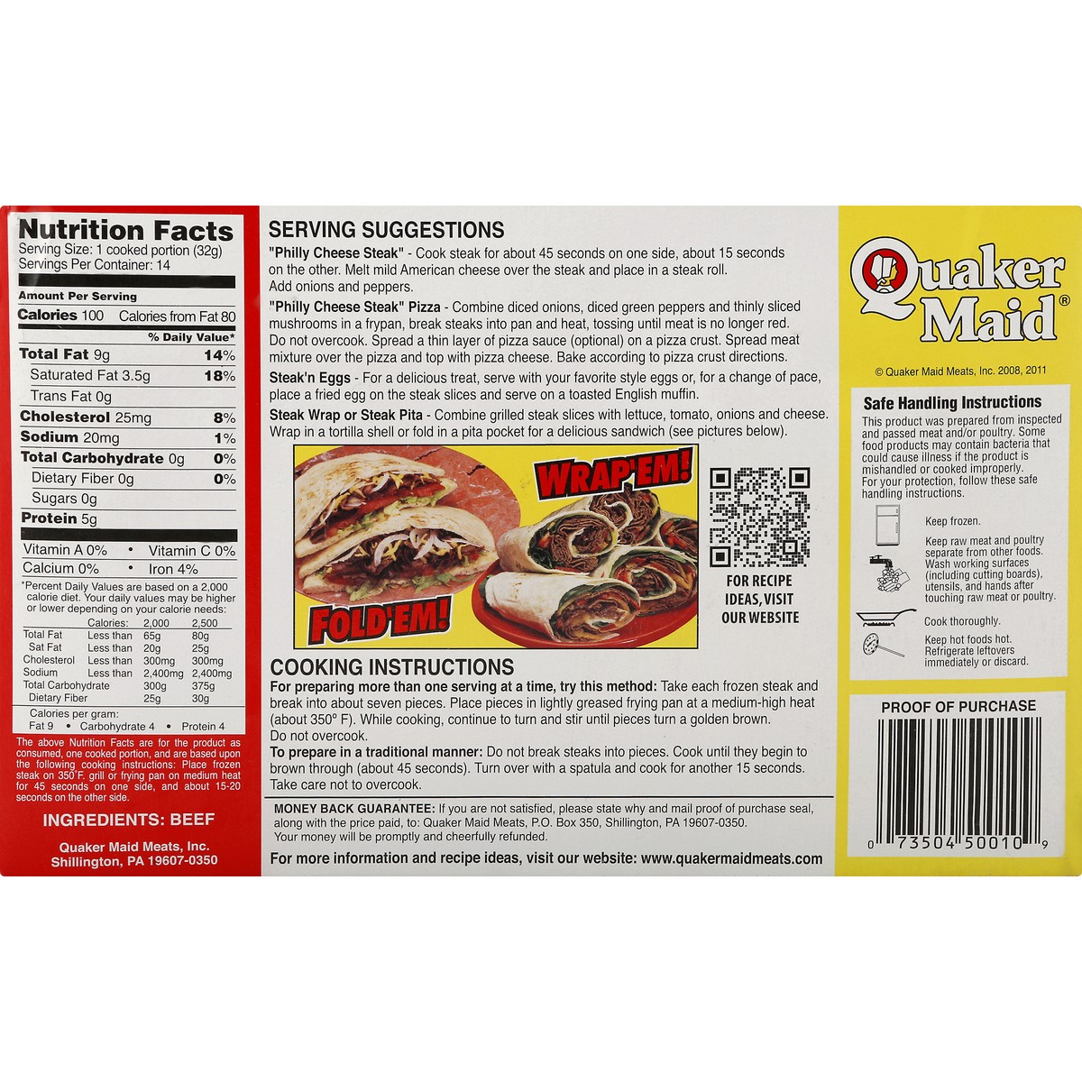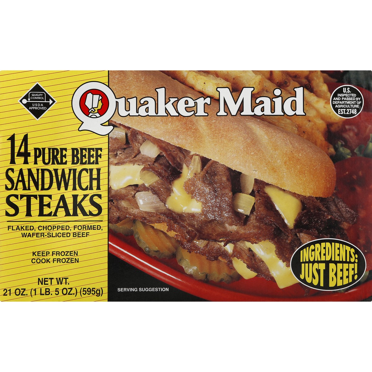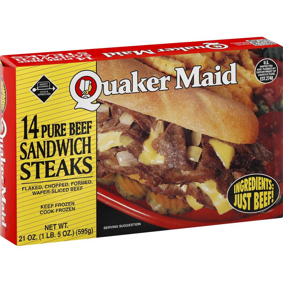 Flaked, chopped, formed, wafer-sliced beef. Ingredients: Just beef! Money back guarantee. Quality control USDA approved. US inspected and passed by Department of Agriculture. www.quakermaidmeats.com. …