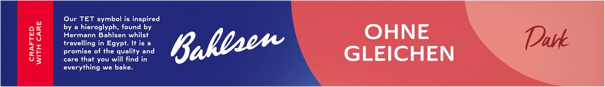 Hazelnut wafers covered with dark chocolate. Fine European biscuits. All natural. Bahlsen guarantee. www.bahlsen.com. First class. Made in Germany.